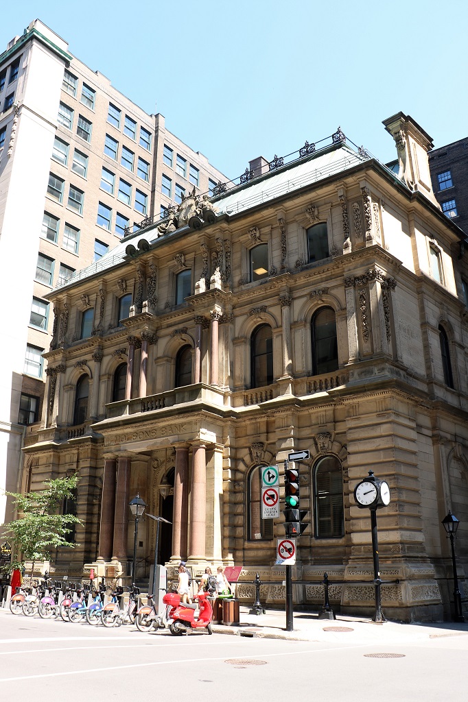 The 1866 headquarters of the Molson Bank, begun by William Molson, son of the founder of the Molson dynasty. It was the first building in Montreal to be built in the Second Empire style. The bank had 125 branches across the country by 1925, the year it was absorbed by the Bank of Montreal.