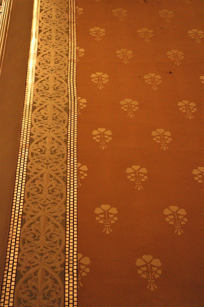 I think all the gilt squares in the stipes on the high, high walls were handpainted. Notice how the rows are uneven.