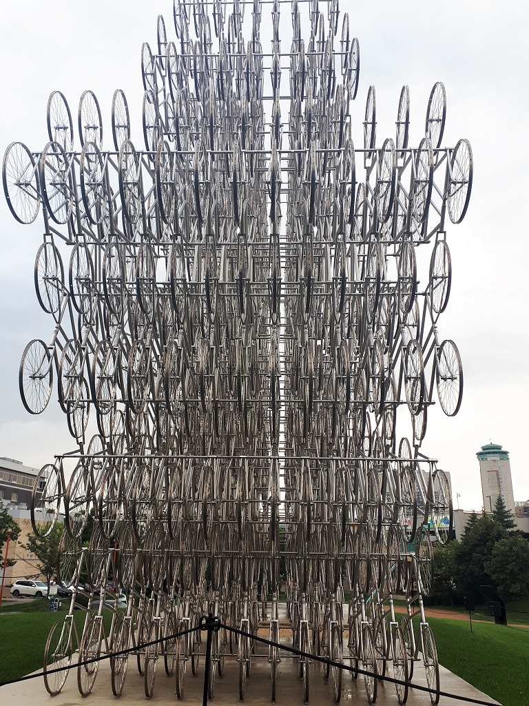 The sculpture is composed of 1254 bicycles and is dismantled and set up by a special team in each location it visits. The artwork bio says: “Titled Forever Bicycles, the sculpture alludes to the bikes that flooded the streets of China, Ai’s home country, during his childhood. Despite their seeming omnipresence, bicycles remained financially out of reach for many, including Ai’s family.”