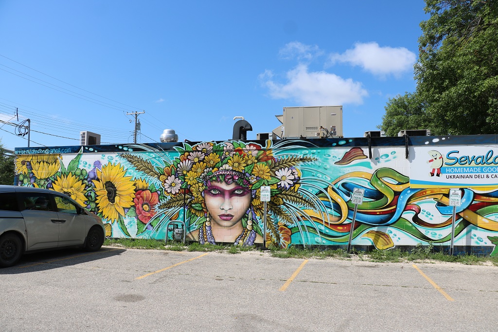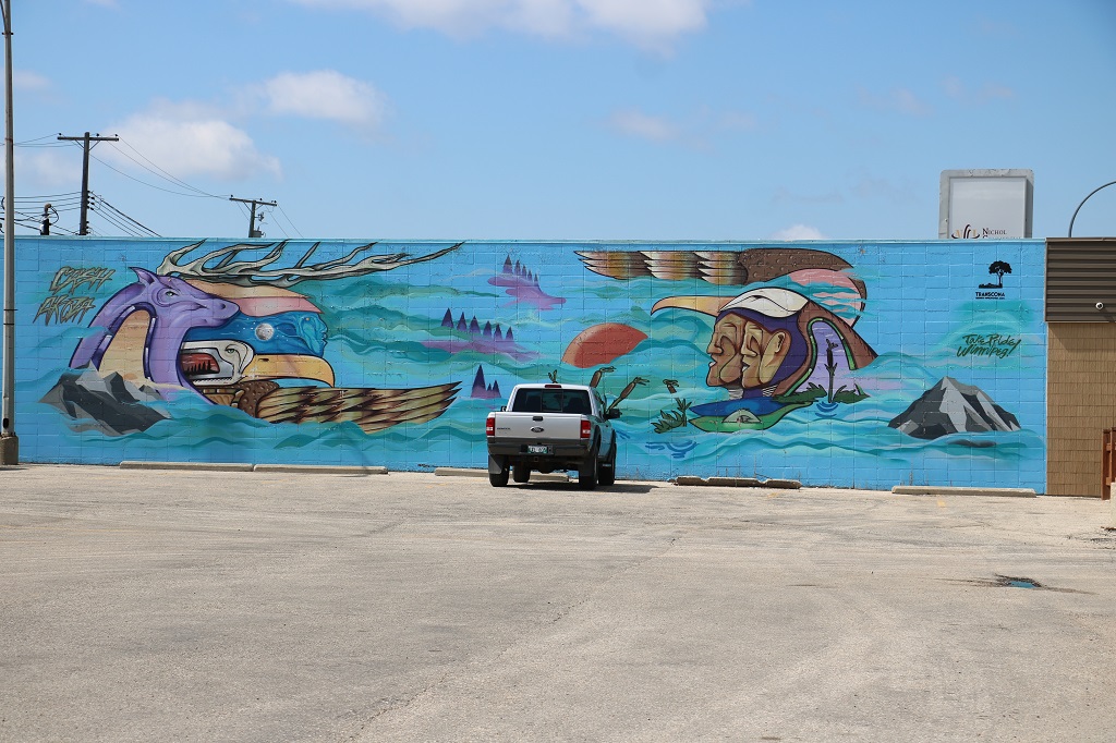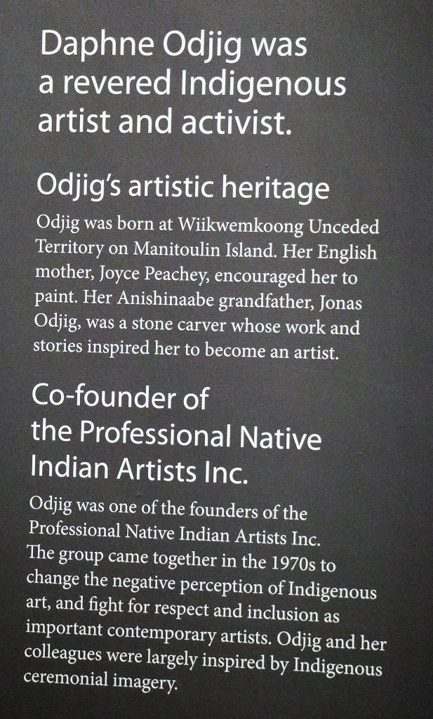 This large wall painting was done by Daphne Odjig. We have a limited print of one of her paintings from the 1980s when she lived in our area. She died in 2016.