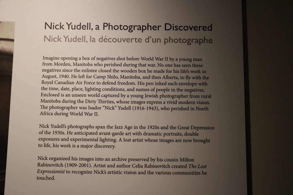 There was a small gallery showcasing the photographs of a young Jewish man who lived in Morden, about 125 km southwest of Winnipeg. He was an avid photographer from the age of 12 and did a lot of experimenting with light and angles, and took many self-portraits. His box of negatives was discovered after he died in North Africa during WWII.