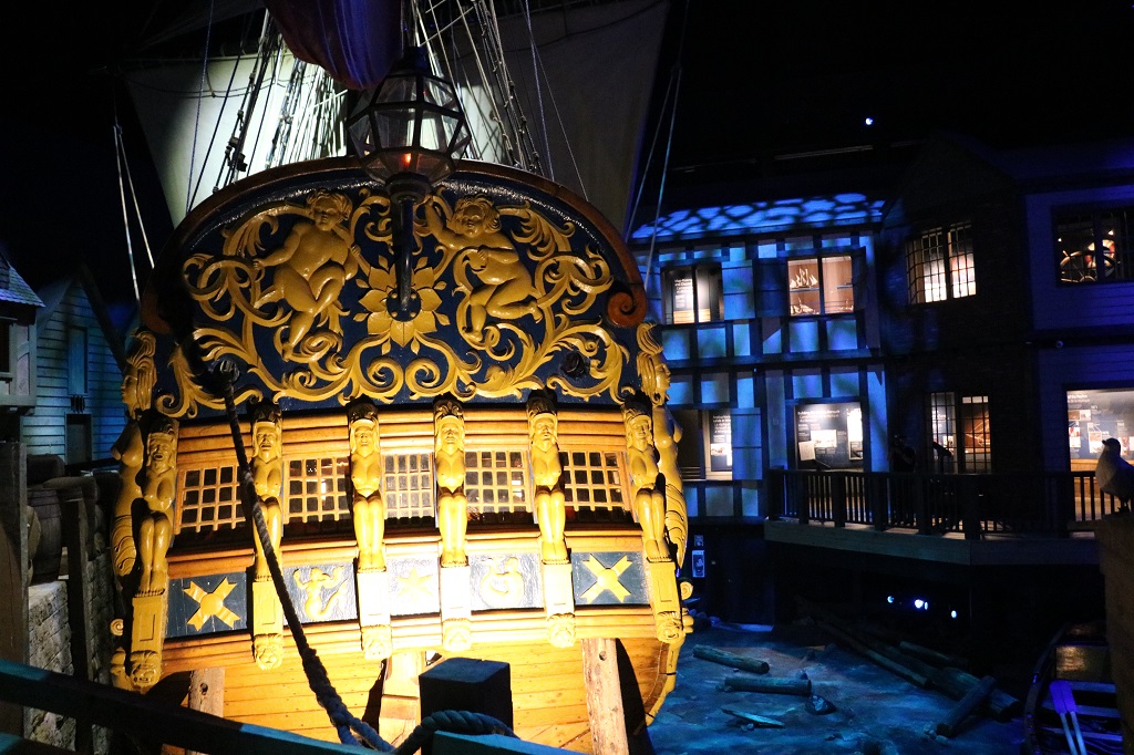 The Nonsuch replica sits as though just returned from her voyage to Rupert’s Land (pre-Canada name) in port at Deptford, England in 1669. The walls that make up the town around the ketch were built after the ship was in place, so Nonsuch is never sailing again.