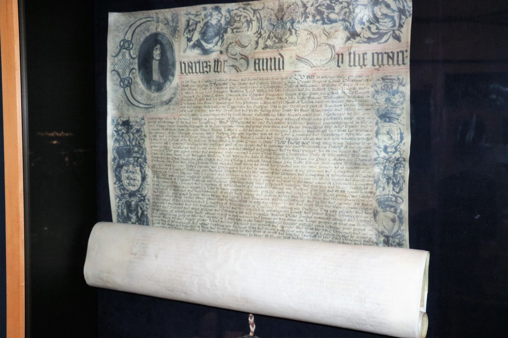 “At 43 tons, Nonsuch had a deck of about 16.2 metres (53 feet) in length, and 11.3 metres (37 feet) along the keel. Her beam (breadth) was 4.6 metres (15 feet), she had a draft of 2 metres (6½ feet), and was designed to take a complement of six to eight naval cannons. Built in Wivenhoe, Essex in 1650, she began life as a merchant ship before she was bought by the British Navy, subsequently captured by the Dutch, and then recaptured by the British before being sold to private interests. She is generally believed to have been named in honour of Barbara Villiers, Lady Castlemaine, one of King Charles II’s favourite mistresses. The name, meaning “none such” or “without equal,” was a nickname of hers.”