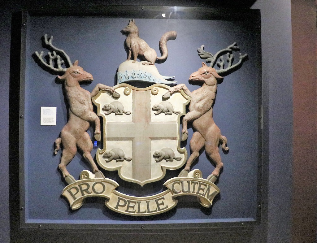This HBC coat of arms was on the exterior of the Hudson’s Bay store in Kamloops, BC (an hour from our home) from 1957-1982 when the store was relocated from downtown to the new Aberdeen Mall up on the hill. Our family did some shopping in that store from time to time.