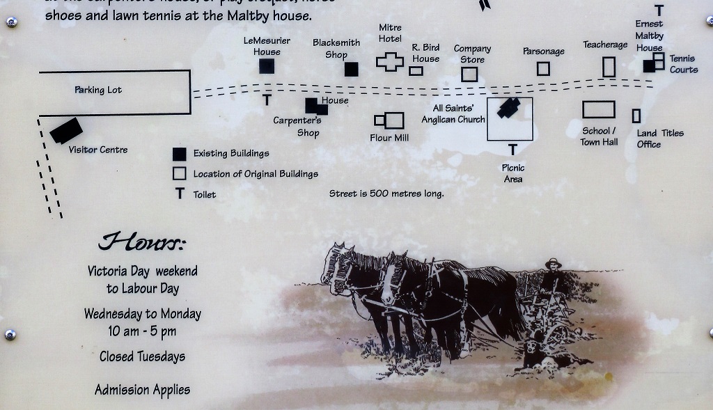 After we read all the sign boards along the village street and checked out the buildings we drove down the road in the direction of the sign. We never saw another sign and ended up getting completely turned around and driving over 30 kilometers on various roads before finding the highway again. And, we discovered we had gone in the wrong direction as well, because after we had been driving westward again we came across the same sign pointing up the road to Cannington Manor. Opps.