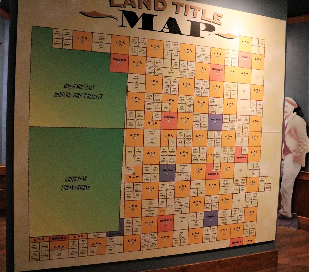 This huge map on the wall showed all the land parcels settled by the Cannington Manor pioneers. What really surprised me were the amount owned by the Canadain Pacific Railway and the Hudson’s Bay Company. Almost every second section belongs to the CPR!