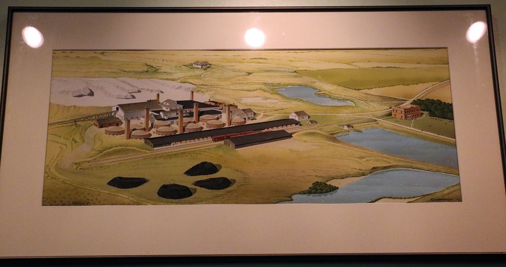 The clay was discovered in 1886 by Tom McWilliams, a local homesteader, when he was using a spyglass to search for his missing cattle. He sent a sample of the clay to an assay office and learned he had found a rare and rich deposit of ‘refractory’ or heat resistant clay. He moved his homestead claim to the property and over the next few decades dug the clay by hand and shipped it to a brick plant in Moose Jaw. In 1912 he sold the property to a new company formed by five prominent Moose Jaw men and the brick plant was built .