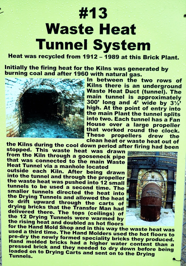 Refractory clay is well suited for manufacturing fire bricks which are used in fireplaces, and to insulate boilers, furnaces, steam engines, etc. Anywhere high heat is generated. The plant was in production from 1912 to 1989.