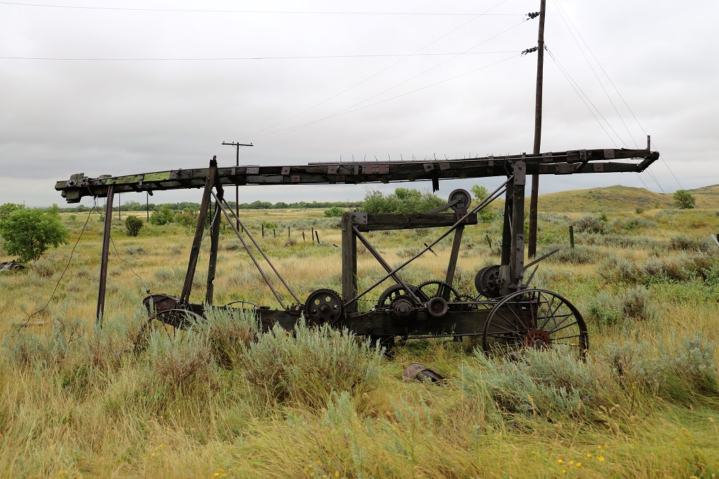 Claybank is just over an hours drive from Assiniboia via some paved and some gravel roads. Up to now the gravel roads in Manitoba and Saskatchewan have been really good; no washboard or potholes. This morning however the tire tread lines were extremely slippery and even though John tried to keep the truck on the gravel in the middle the slick muck kept trying to pull us into the mire. There was quite a bit of sliding going on. Good thing there was virtually no traffic.
