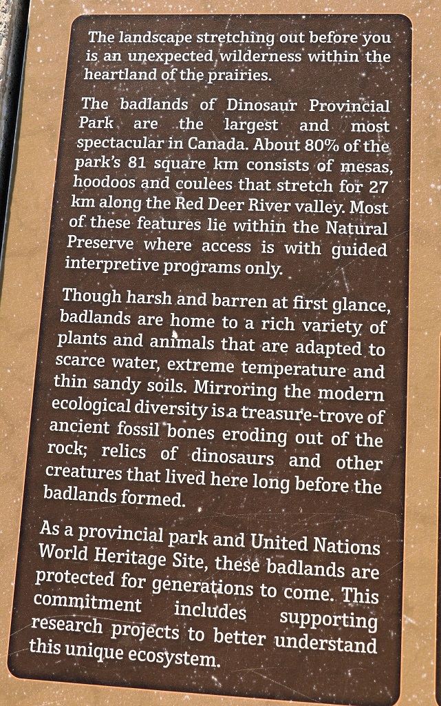 We left Medicine Hat and headed west far enough to connect to the road north to Dinosaur Discovery Provincial Park, a United Nations World Heritage site near Patricia.