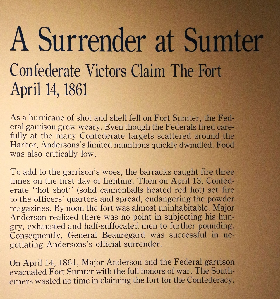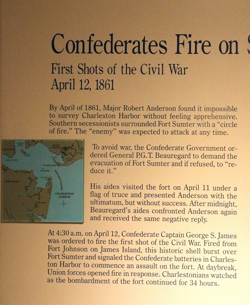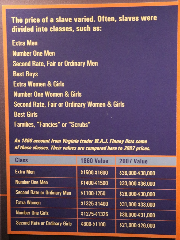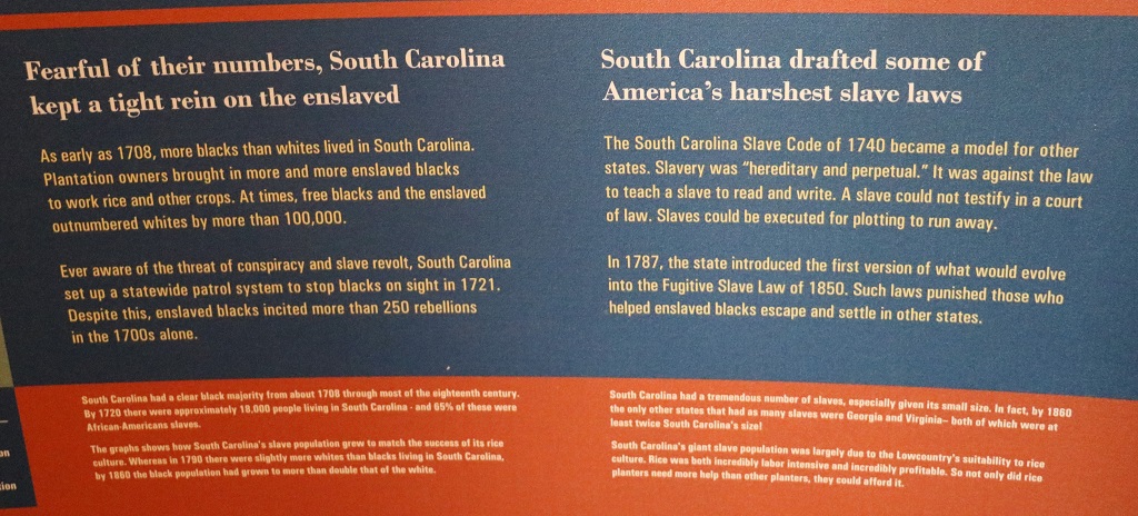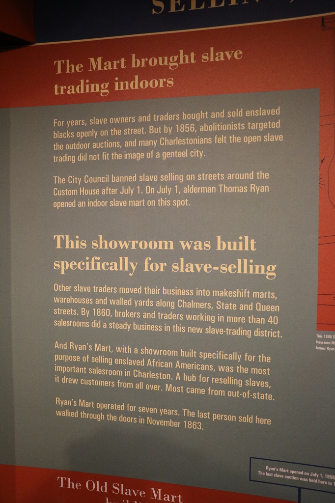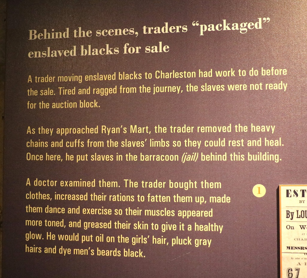 We had tickets for the ferry and access to Fort Sumter for noon so we had time to go to the old Slave Mart first. It, like the International African-American Museum had lots and lots and lots of informational placards and few artifacts. So, apologies, this part of the blog is mostly reading. We arrived at the same time as 50 Grade 6 students on a field trip. The museum was two floors so the kids were split up half up and half down, still the space is not that big so we had to do some dodging. They were polite kids with attentive teachers so there was no problem wandering around with them.