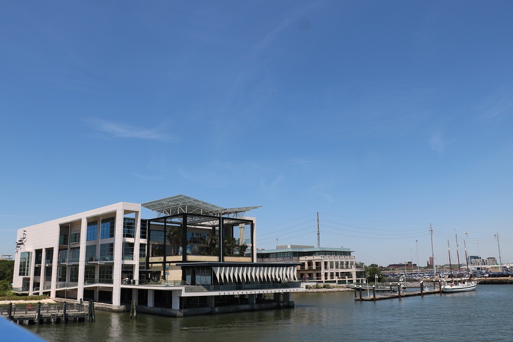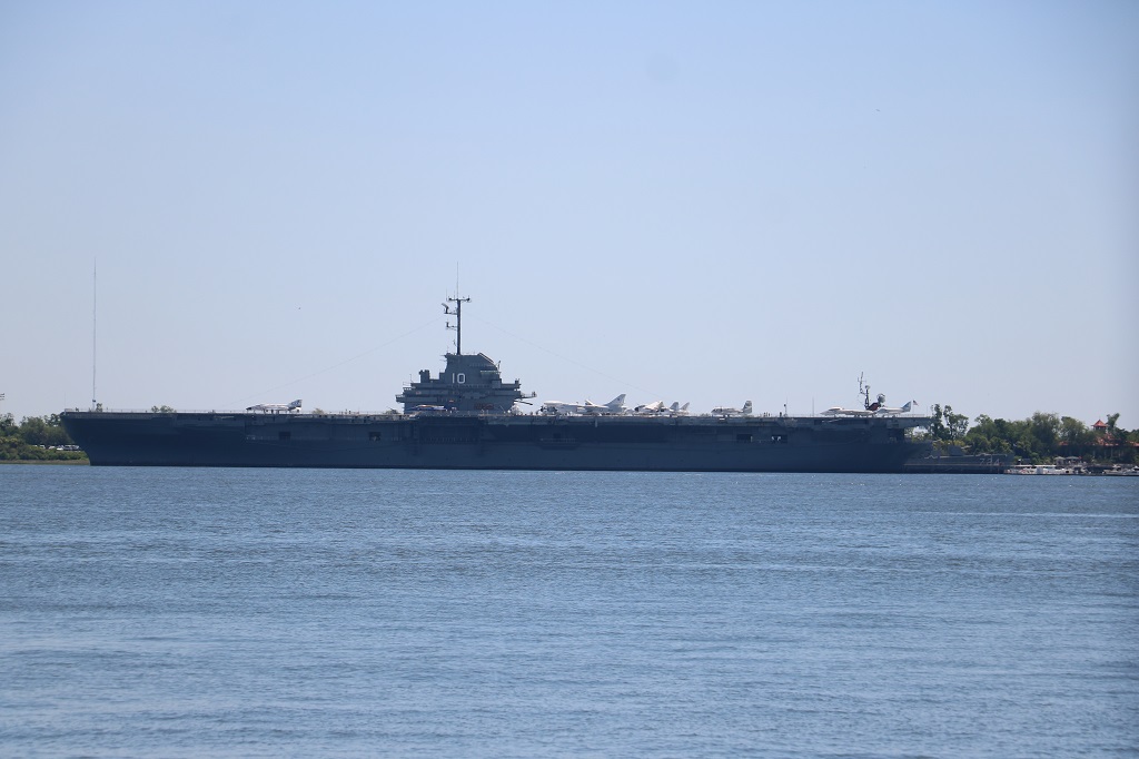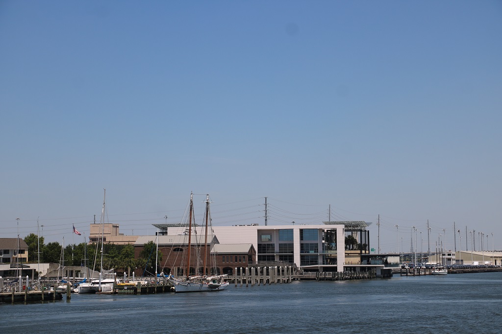 This isn’t a very good photo – long lens and glaring sun. The U.S.S Yorktown aircraft carrier and a WWII destroyer and a submarine are moored at Patriot’s Point and can be toured.