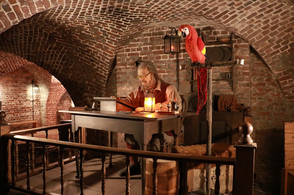 We arrived at the Exchange House and Provost Dungeon just as the tour was beginning so we hustled down to the lowest level. The jail (called a dungeon by the prisoners, not the city) was where everyone from someone who gave insult to a prominant citizen to murderers and career criminals, to slaves and women were all kept together in one not-very-big open space. The original use for the rooms under the Exchange House were to store the goods that were being bought on the exchange floor above. The guide gave a very interesting talk about all the different uses that had been made of area over the many years of the building’s lifetime.