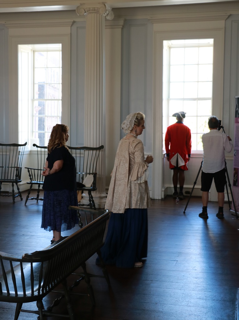 The Exchange House was being used to film a new season of a TV show and the “soldier” and woman were about to be filmed for a short shot. She looked so nice we asked if we could take her photo and she happily agreed