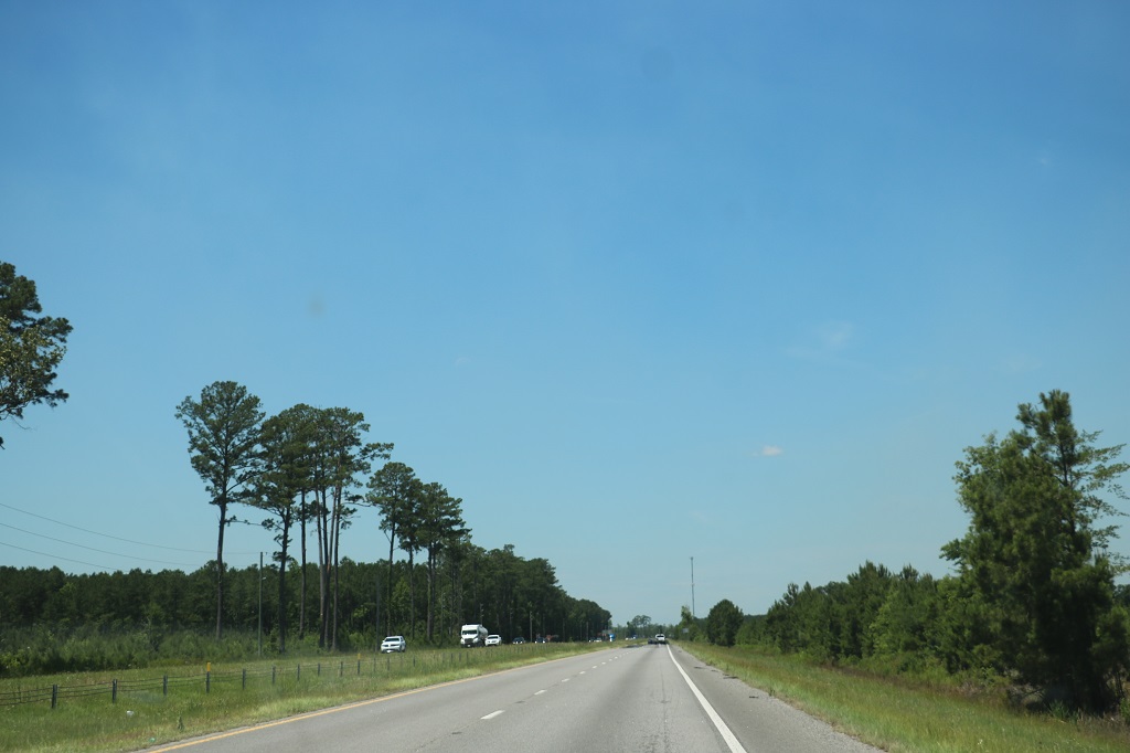 Driving down here in the south is like driving across the prairies – with trees. Long straight roads and very flat.