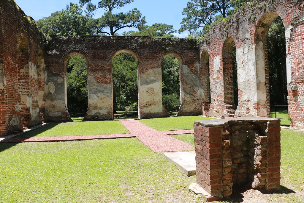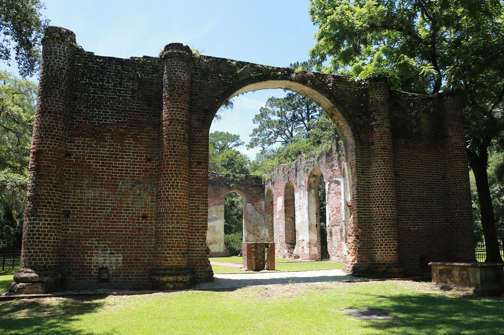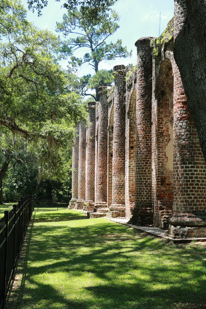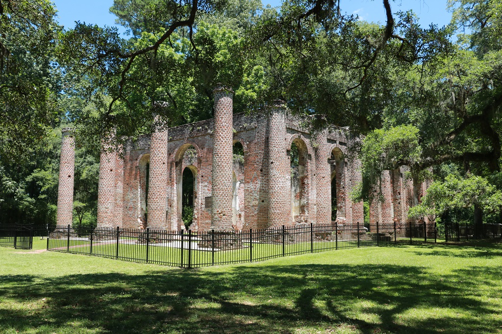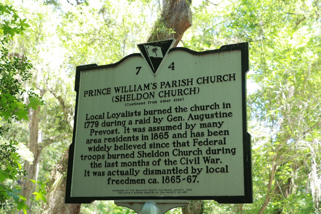 We wanted to see the Old Sheldon Church ruins so we put the name into Mary Lou’s system. My notes said it was located 2 miles off Highway 17 but Mary Lou had us drive 8.9 miles down River Road, then she directed us up about 2 miles and then back the way we had come for almost the 8 miles again along the Old Sheldon Church Road. We got a nice tour of the countryside and I did like the Spanish Moss hanging off the Live Oaks.
