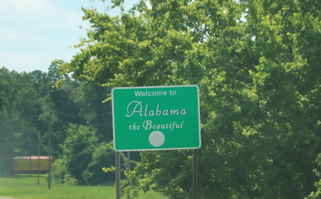 We crossed the bridge over the Chatahochee River and left Georgia to enter Alabama. The Welcome sign was just a small highway sign on the far side of the bridge. We drove right past it before we processed that we were in a new state. John kindly did a U-turn a bit futher up the road and U-turned again so we could cross the bridge again and I could snap a pic. This is the most non-descript “Welcome to” sign we have ever seen.