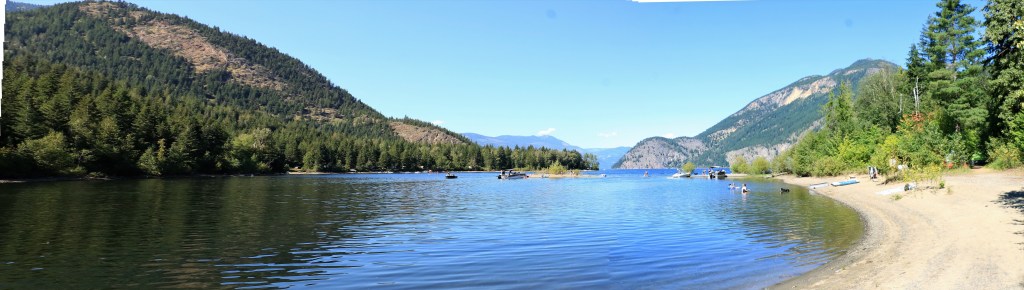 Lower elevations and a few days of milder weather and we were free of snow again. We drove around to the North Shore of the main Shuswap Lake and found a couple of geocaches at Magna Bay. Clear blue water and fall colours make for pretty pictures.