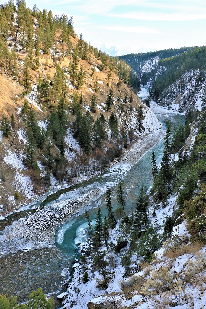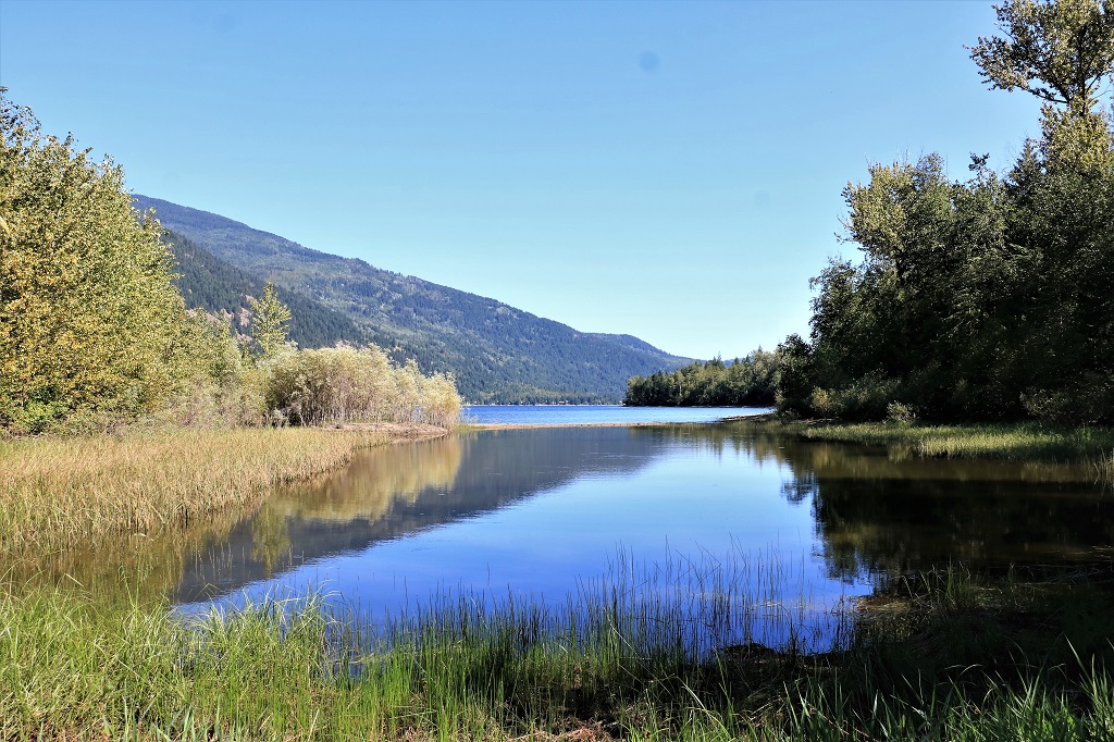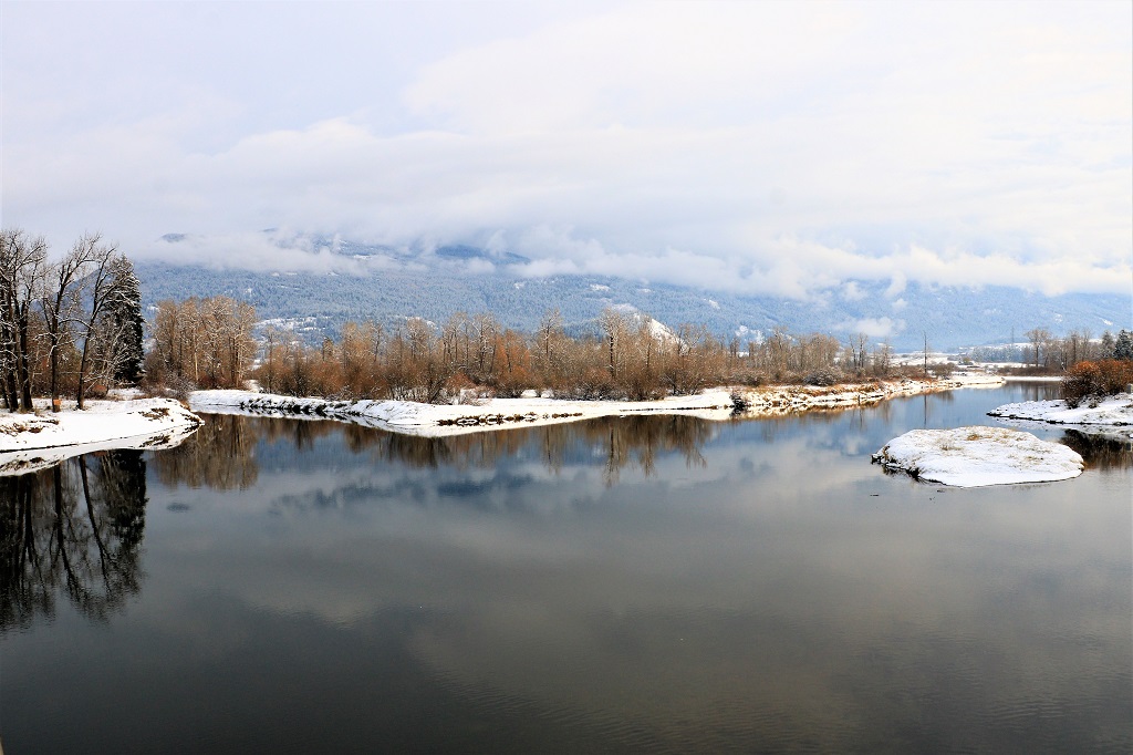 The community of Enderby is the closest to our home in Salmon Arm. It stretches along the banks of the Shuswap River and one of our days up Hunter’s Range was a beautiful day and the reflections in the river as we crossed the bridge were so pretty I had John pull over on the other side so I could walk back and take some photos.
