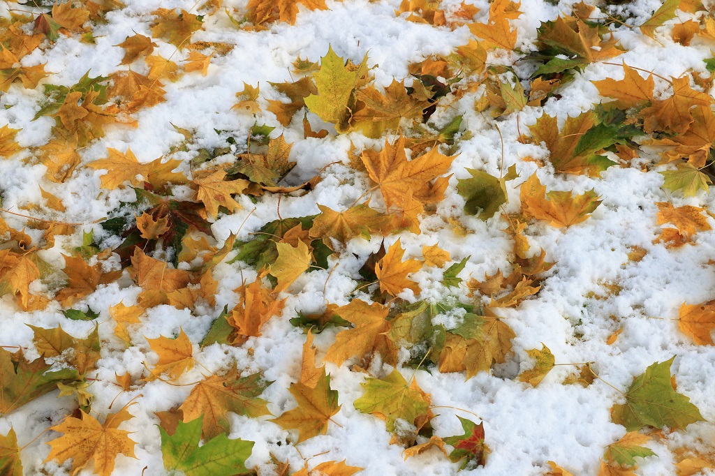 As I stepped out of the truck in the parking lot I noticed all the leaves of a maple tree had dropped and created a lovely colourful carpet on a fresh snowfall.