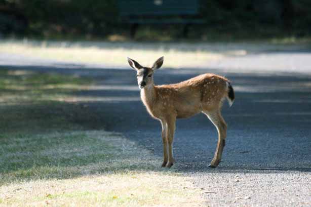 On the way to Sooke we stopped at Fort Rodd Hill National Historic site and toured the old bunkers from WWII.  (All the photos at Fort Rodd Hill are John’s.  Mine were no good and I deleted them.) Fisgard Lighthouse is situated nearby along the southern end of Vancouver Island.  It was a lovely day and the light looked very picturesque on its rocky point. This young deer was very curious about the two strange two-legged animals it saw.  It stood watching us for quite awhile before moving off.