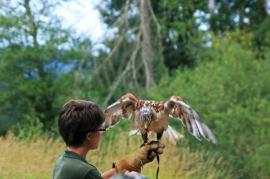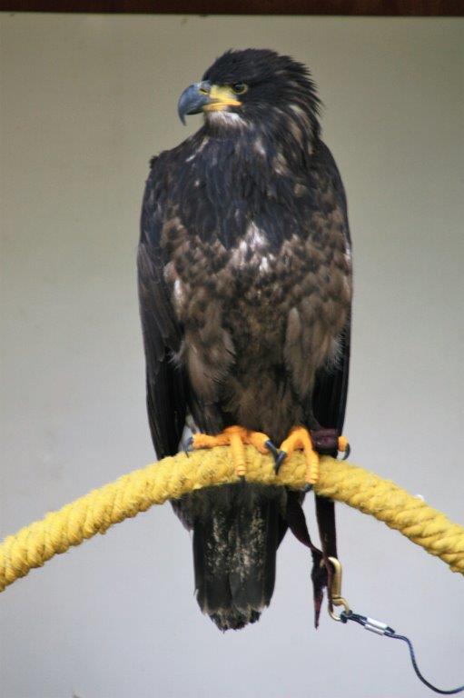 The next day we drove north to Duncan, about an hour away.  The Pacific Northwest Raptor Center is located there and we spent a pleasant few hours checking out the birds and watching the handlers give a demonstration of the raptor’s skills.  I have a short video clip of a hawk flying through the spread legs of about 12 guests.  It flies so fast you can’t even see it until it is lifting up and away. Really awesome stuff!  And so much fun to see.  Cooper’s Hawk                                              Bond, a Ferruginous Hawk.   Lucy is a Harris Hawk and (below) is Chinook, a Redtailed Hawk
