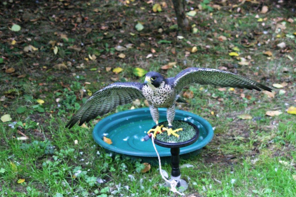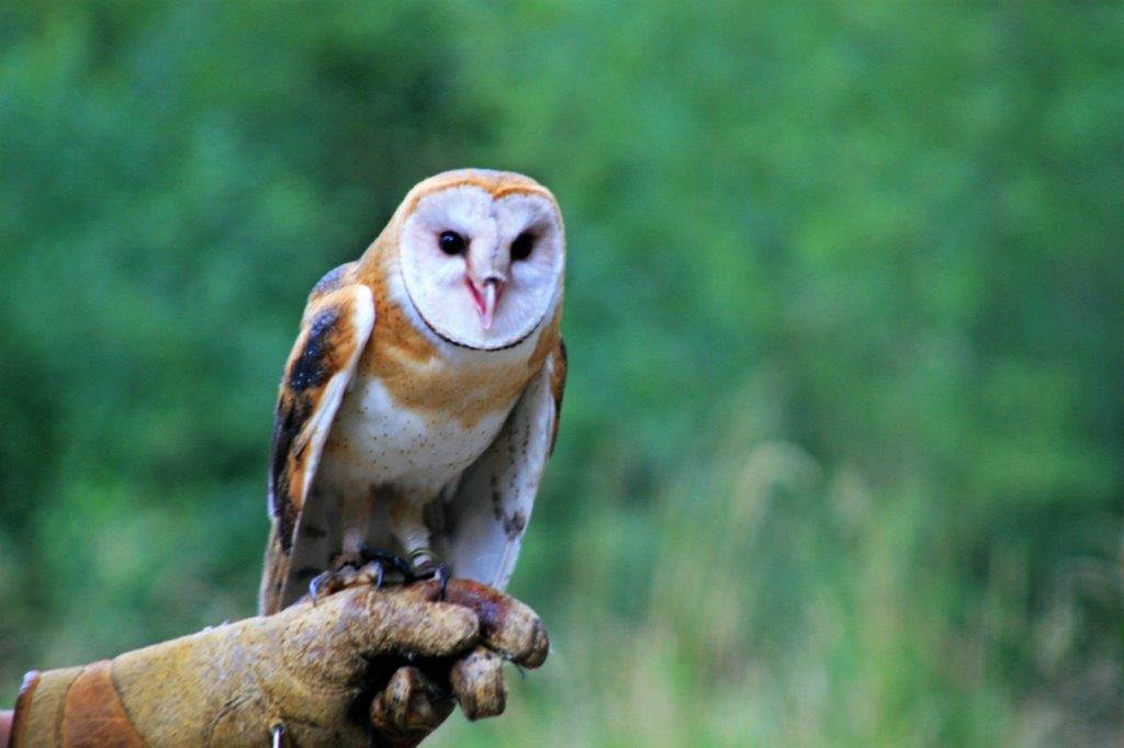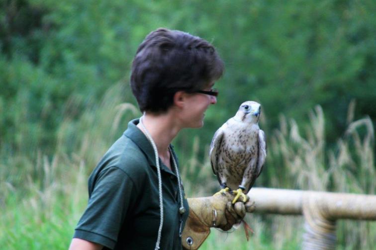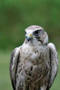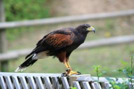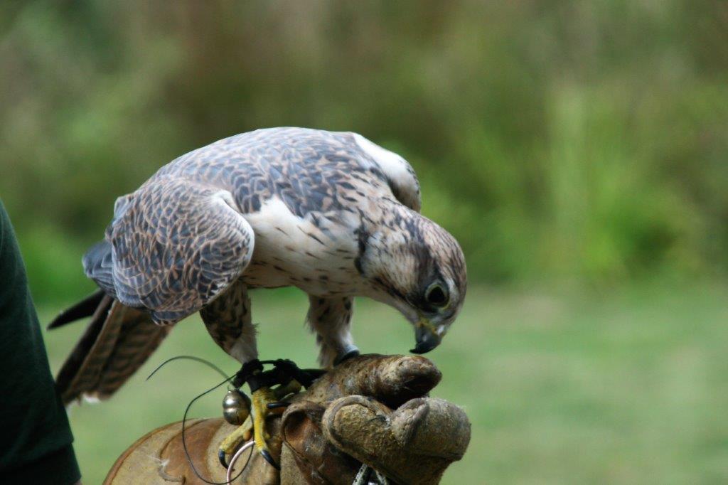 This is a Saker Falcon                               Anakin, the Harris Hawk                                                A Barn Owl.                         Even the Black  Vulture is part of the show.   This little Gryfalcon was quite the star.  These are an Australian Kookaburra and a Spectacled Owl.