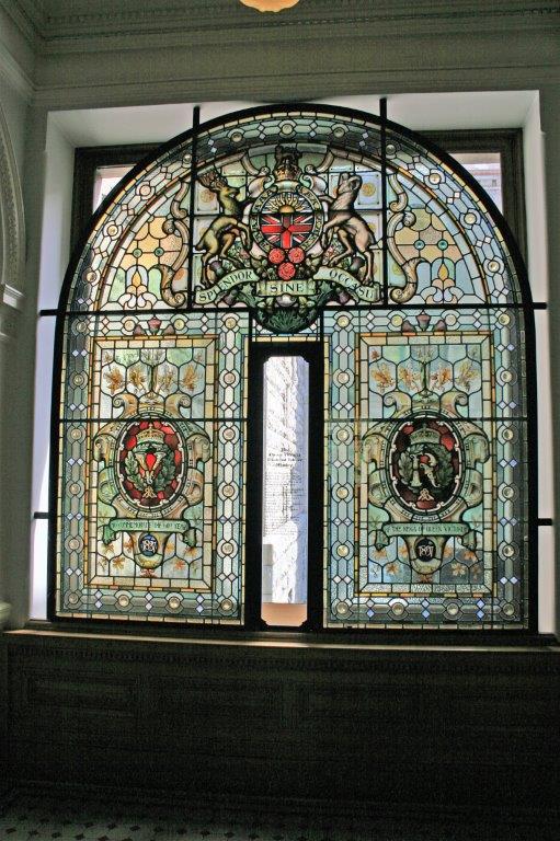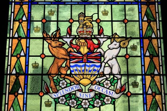 September 2, back in Victoria, we took a tour of the BC Parliament Buildings.  We toured this building when we were on our honeymoon many moons ago and it was nice to see it all again. These four murals, depicting the resources of British Columbia are painted around the central dome.The room where all the silliness takes place. And, occasionally some work that benefits or hinders the province and/or it’s citizens. The coat of arms of British Columbia.  I love stained glass windows!View of the front lawn from one of the windows.  The Inner Harbour is straight ahead and the Empress Hotel is on the right. A short walk down the side of the Inner Harbour from the Parliament Buildings takes you to the world-famous Empress Hotel, where you can partake of High Tea every afternoon.  The Empress has an absolutely stunning rose garden and I had a great time photographing many of them. This was our final day in Victoria and in the morning we drove to the ferry terminal and crossed Juan de Fuca Strait to Port Angeles, Washington, where began our coast drive.