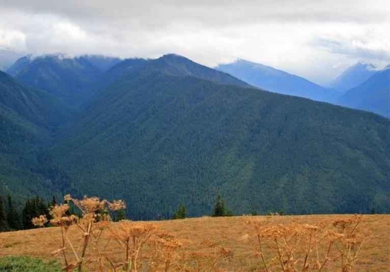 We left Victoria the morning of September 3 and took the ferry across Juan de Fuca Strait to Port Angeles, WA.  The Strait separates the southern end of Vancouver Island, British Columbia from the Washington Olympic Penninsula, much of which is protected in Olympic National Park.The 18-mile drive from Port Angeles up Hurricane Ridge takes you ever-deeper into dense forests of Douglas fir, hemlock, western red cedar and alders.