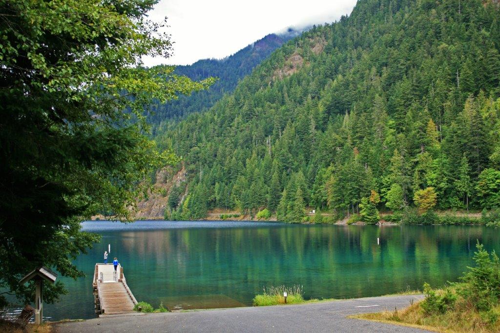 About half-way up is Lookout Rock where there are views – on a clear day – of the strait and Mount Baker.At Crescent Lake there are a few cabins and a couple of resorts.  The area is very popular for hiking holidays in the summer.  There is a road that encircles the park but most of the natural beauty spots have to be reached on foot.