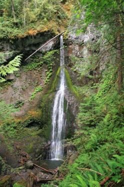 Marymere Falls are at the end of a three-quarter mile trail.  The falls drop 90 feet down the rock face in a pretty cascade. Unless you are camping (and I don’t camp), there are not many places to stay along the coast of the penninusula so we drove back to Port Angeles for the night.