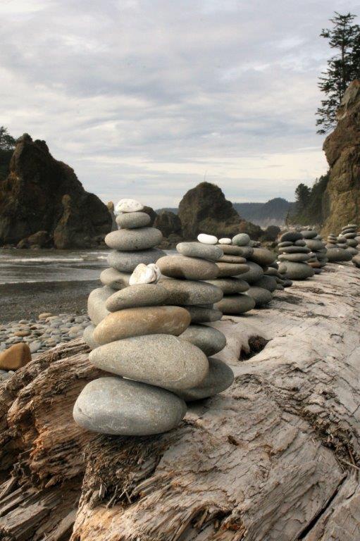 We really liked Ruby Beach and we spent quite a bit of time wandering over the rocky beach.  The shore is littered with driftwood and completely covered with round rocks, smoothed by the ocean tides. That night we stayed in the community of Aberdeen which sits at the end of Grays Harbour, an almost-completely enclosed natural harbour.
