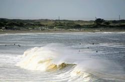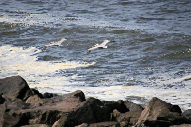 At Ona Beach we had a good wander around.  Several folks had made sand castles and a lady was exercising her dogs.  I think she had about 7-8 Keeshunds. This nice wooden bridge is in Brian Booth State Park at Ona Beach.