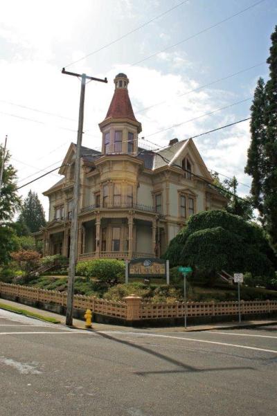 We spent the night in Astoria and after breakfast we set out to do a bit of sightseeing.  Our first stop was the Flavel House Museum.  We were actually allowed to take photos (without flash) in this house, which is quite unusual for historic buildings.   Very few facts are known about George Flavel before he came to Astoria, there is even dispute over where and when he was born.  And few details are known about the man’s personsonality and businesses either.  In Astoria he was known as a fearless seaman and ran a very successful river boat pilot service.  He had other businesses and also invested in real estate.  At the time of his death in 1893 it is said that his estate was worth $1.25 million (about $50 million in today’s value).  In 1854, when he was 30, he married his wife Mary Christina who was 14.   They had three children.  After his death his widow lived in the house with her two daughters Nellie and Katie, until her death in 1922.  Nellie and Katie also lived in the house the rest of their lives (Katie died in 1910 and Nellie in 1933).  George Flavel’s funeral procession was one of the longest ever held in Astoria.