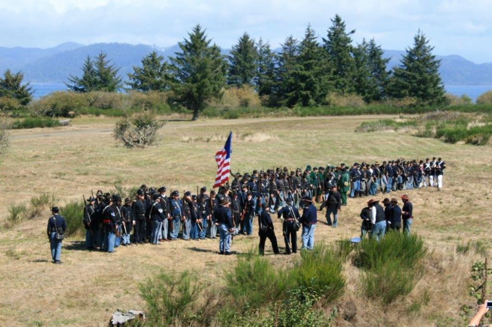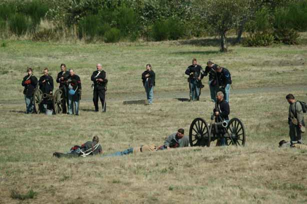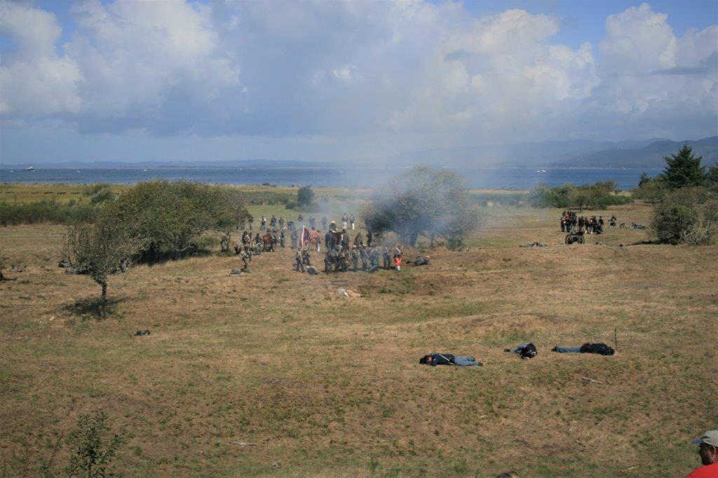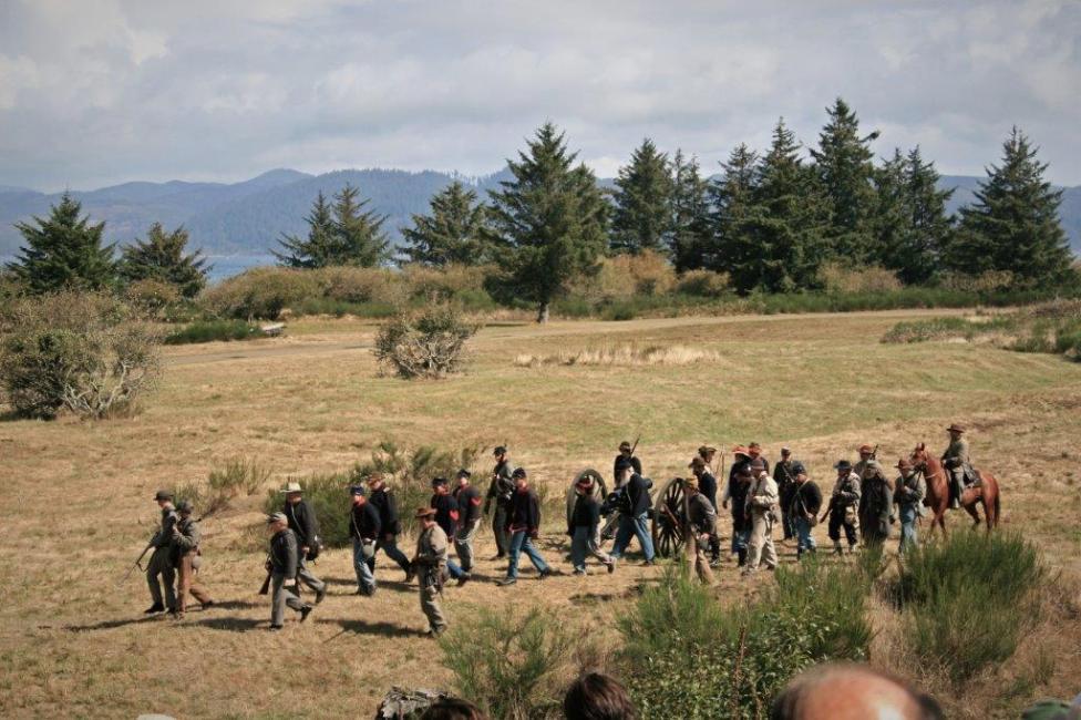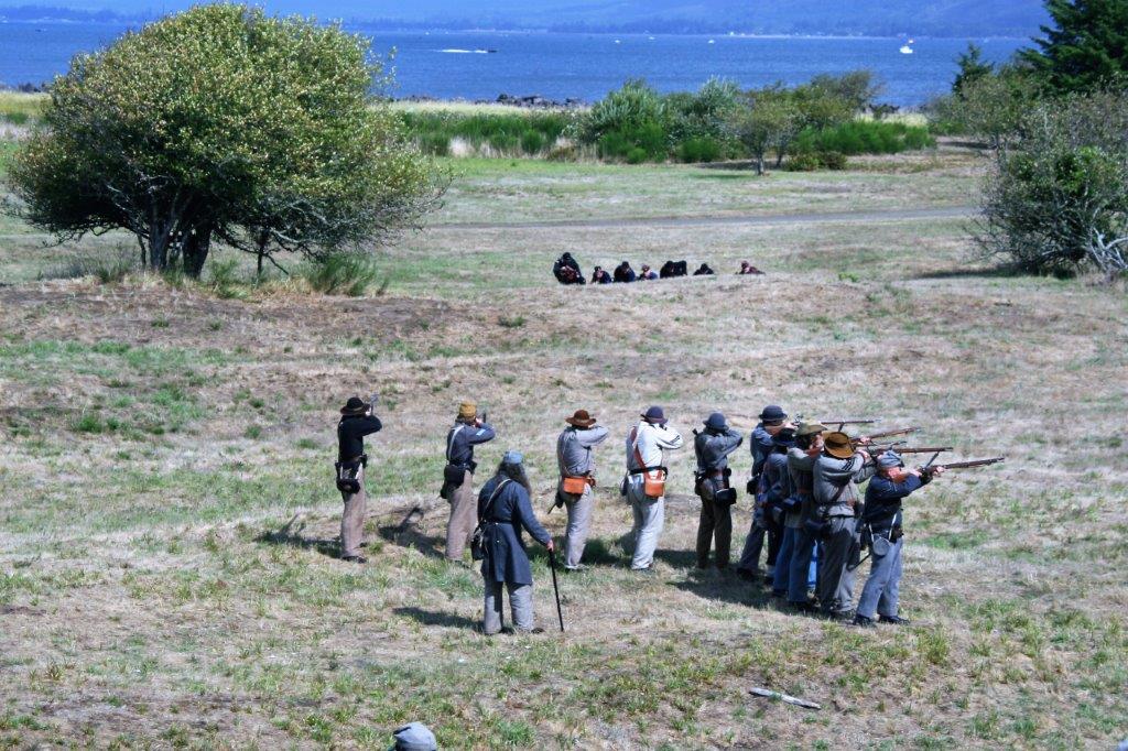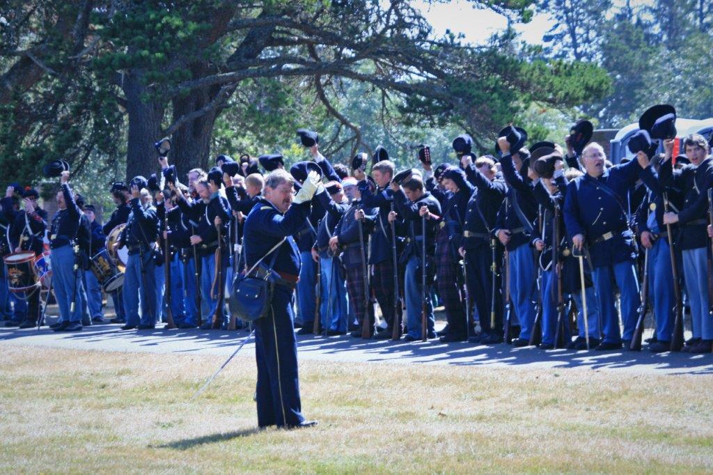 The battlefield was soon littered with ‘the dead.’  At the conclusion of the battle (the Union army won) all soldiers doffed their hats in a moment of silence for their ‘fallen’ comrades while the bugler played “The Last Post.” To finish of the performance the two armies formed a line and took turns firing their muskets and rifles.  All of the soldiers joined in a march from the battlefield to the campsite and gave a cheer for a job well-done. It was really neat to see.  I am glad we chanced upon the advertising sign.  If you are ever going down the Oregon coast near Labour Day I recommend you make some time to go to Fort Stevens.