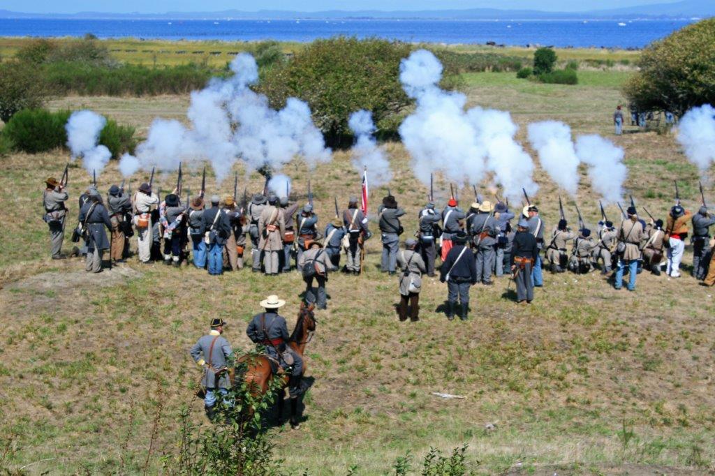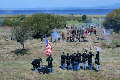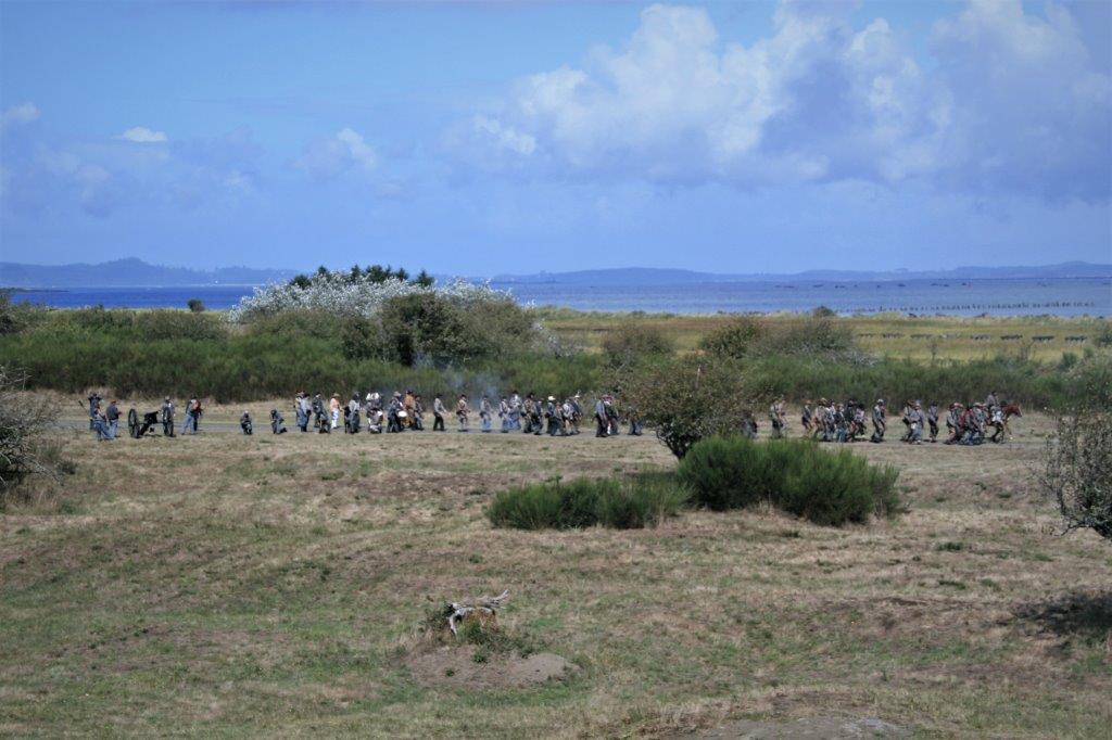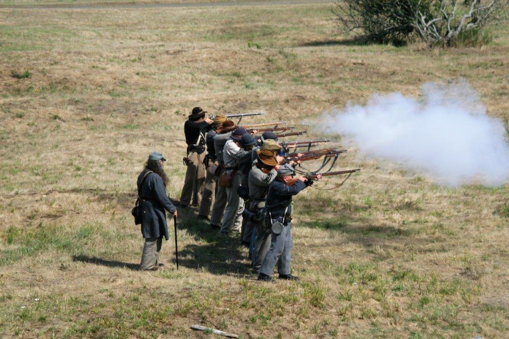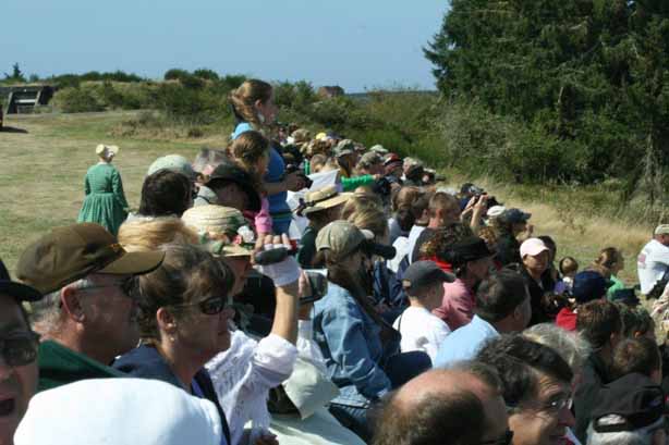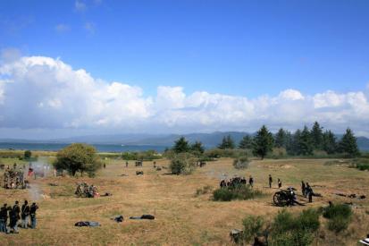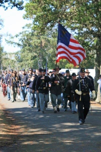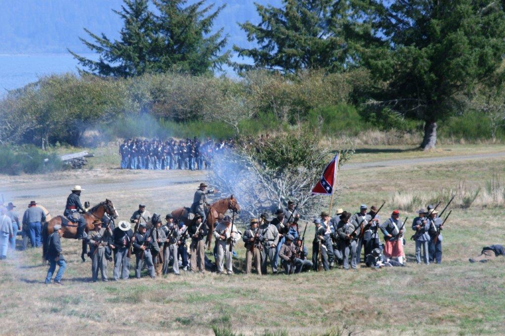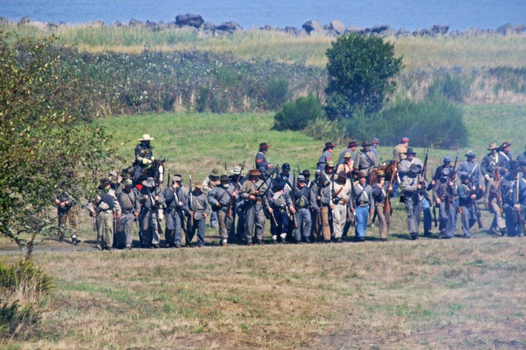 The battlefield was soon littered with ‘the dead.’  At the conclusion of the battle (the Union army won) all soldiers doffed their hats in a moment of silence for their ‘fallen’ comrades while the bugler played “The Last Post.” To finish of the performance the two armies formed a line and took turns firing their muskets and rifles.  All of the soldiers joined in a march from the battlefield to the campsite and gave a cheer for a job well-done. It was really neat to see.  I am glad we chanced upon the advertising sign.  If you are ever going down the Oregon coast near Labour Day I recommend you make some time to go to Fort Stevens.