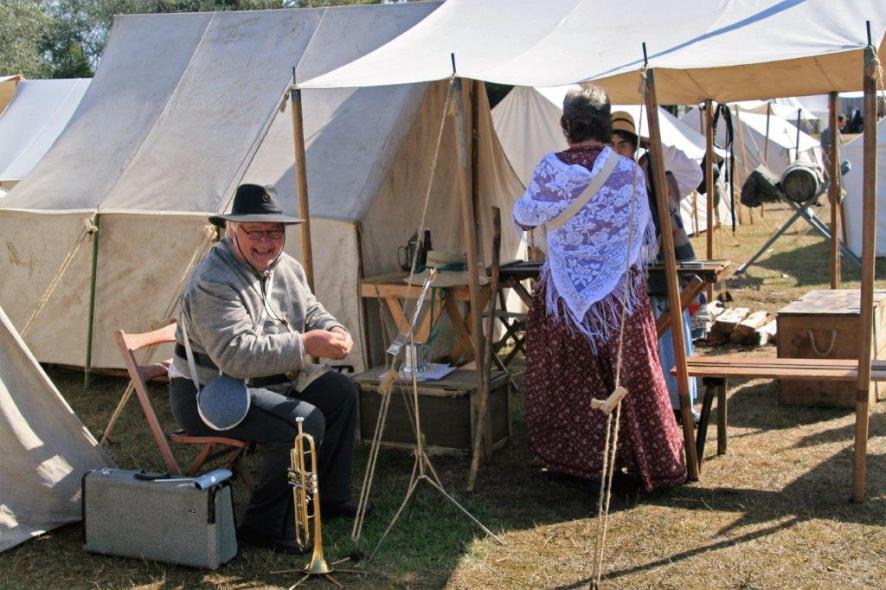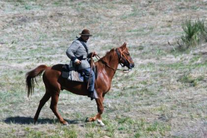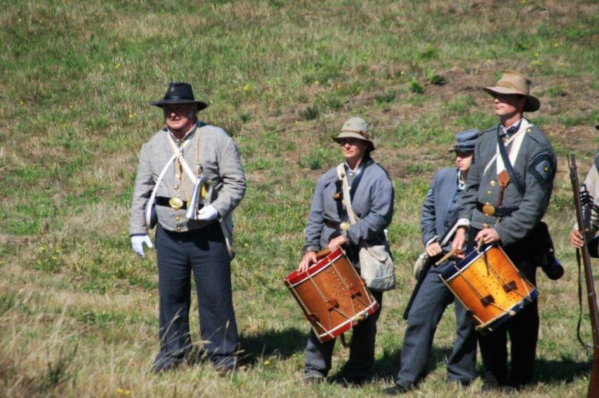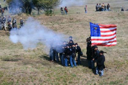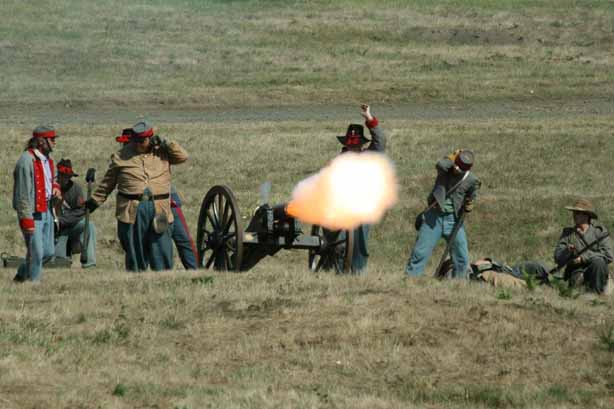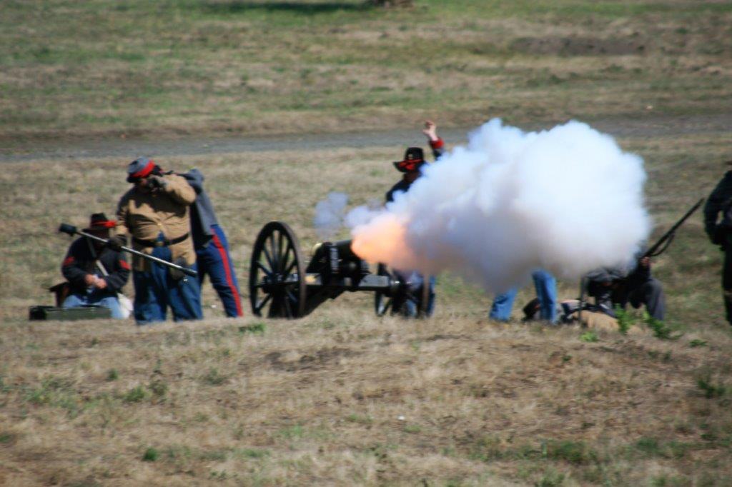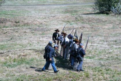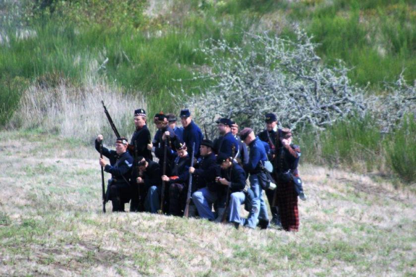 There was a schedule of battles posted for the weekend.  We were in time to see the final one.  Sometimes they re-enact an actual battle that took place during the American Civil War, sometimes, like the one we saw, the organizers create a scenario.   The ‘battle’ we saw was a rescue attempt by the Confederates to free some of their soldiers that had been taken prisoner by the Union army.