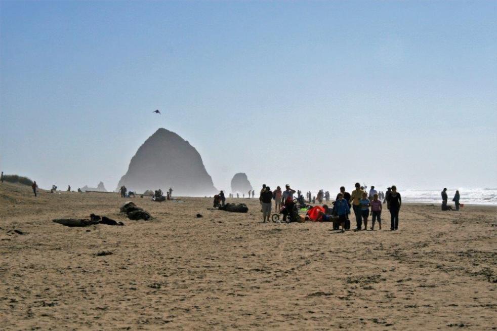 We had a reservation in Tillamook for the night and the War Re-Enactment was coming to an end so we headed southward.  We stopped at Cannon Beach and got some good photos of Haystack Rock.  This is a popular kite-flying beach and there were many people out enjoying the activitiy that day.  We stopped again not far out of Tillamook and took some photos of the tall dried thistle-like plant growing beside the road. It turned out to be a very full, very interesting day.