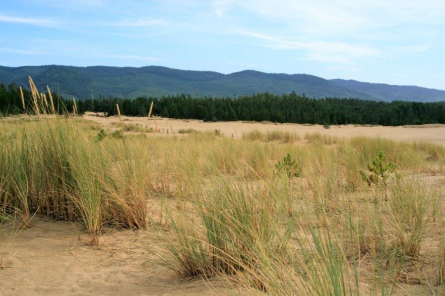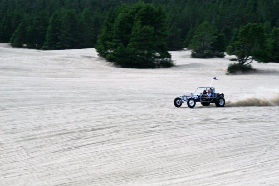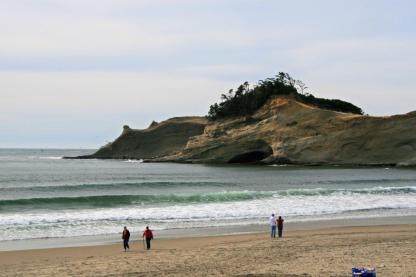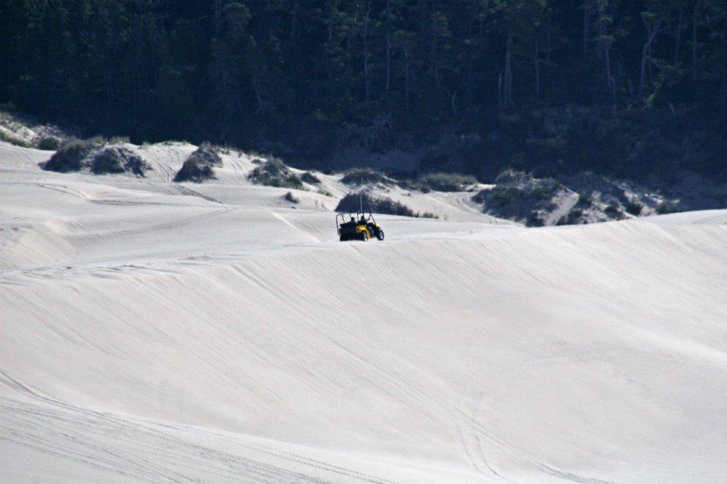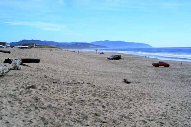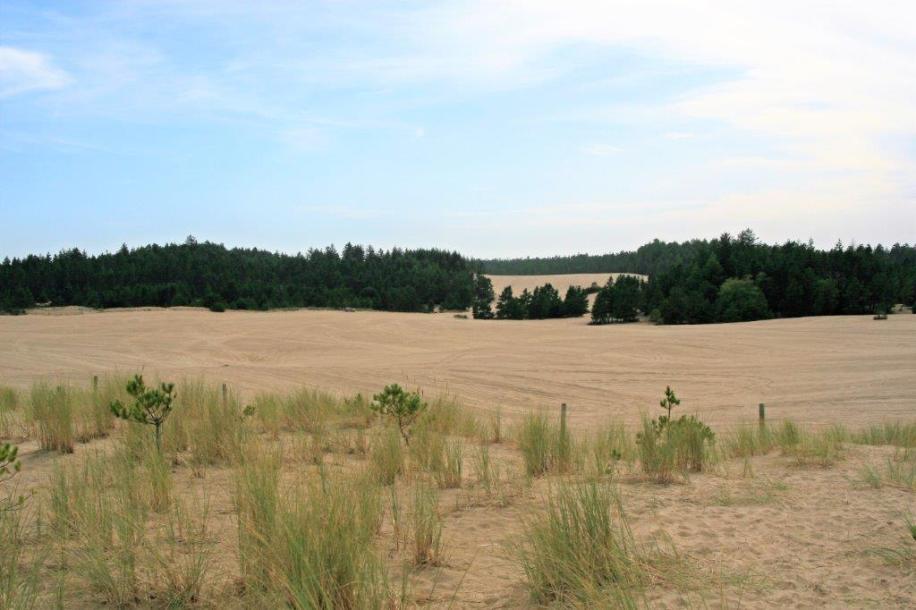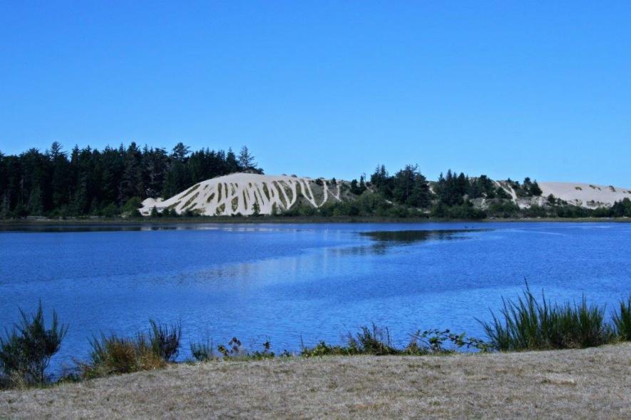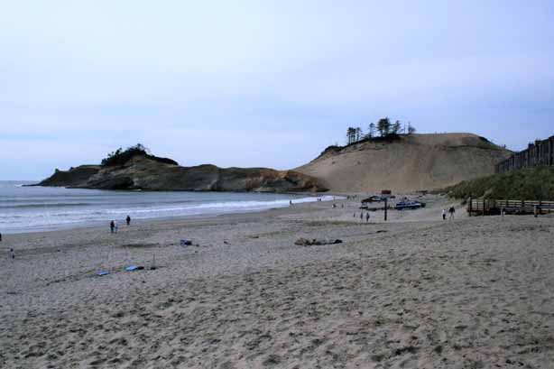 As is always the case, any seaside cliff will become nesting grounds for birds.Three Arch Rocks can be seen just a little bit south of Cape Meares. Sand Lake Recreation area is a popular spot for beach driving.We had entered the Oregon Coast Dunes area.  From north of  Lincoln City to Florence and North Bend there are miles and miles and miles of golden sand dunes.  There are only a few places you can see them from the road, but plenty of recreation area accesses if you look for them.  We had taken a dune buggy ride on the sand when we drove down to Disneyland and San Diego Sea World with our friends in 1999 so we knew where to turn off to check them out. We spent the night at Lincoln City after driving an incredible 45 miles in the day.  No one ever said we rush on road trips….