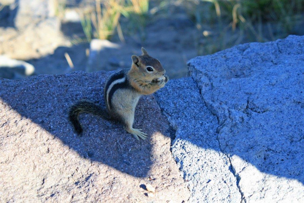 I search the maps as we drive along and suggest stops to make each day as we travel.  I love National Parks and I noticed Crater Lake NP was located in our general direction inland, so we decided to go have a look-see.  I have since learned that Crater Lake is considered one of the seven natural wonders of Oregon and is considered a true jewel within the American National Parks system.  And I wholeheartedly agree!  It was a magical place.We drove up the narrow switchback road to the summit and got out at the first viewpoint.  Holy cow!  You find yourself standing at the edge of a massive volcanic caldera that is filled with sapphire blue water.  The crater was formed 7,700 years ago when the volcano Mount Mazama collapsed.  The caldera is over 2000′ deep making the lake the deepest in the United States at 1949′.  It is estimated that it took about 720 for the lake to fill to its current level.  The lake is 5 by 6 miles wide and there is a rim road that will take you all the way around.