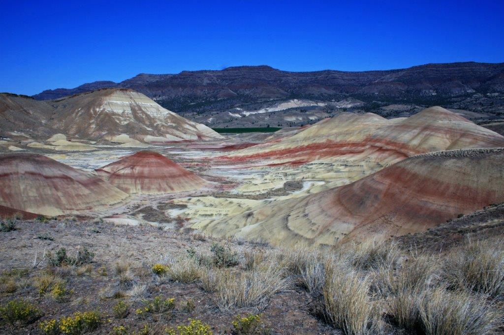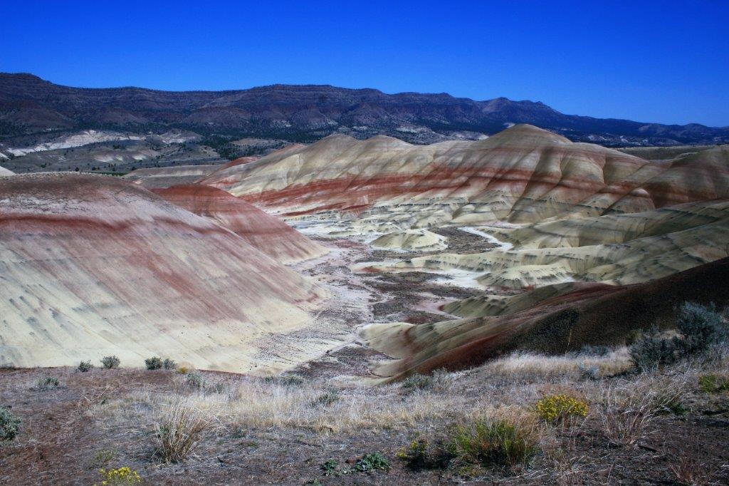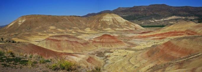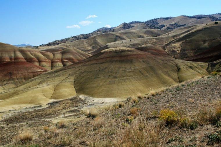 Just as I loved Crater Lake, I also loved the Painted Hills. I had never seen anything like them before (there are similiar striping in the cliffs and hills near Drumheller, AB but we hadn’t seen them at this point).  Both John Day and Drumheller are areas rich in prehistoric fossils.