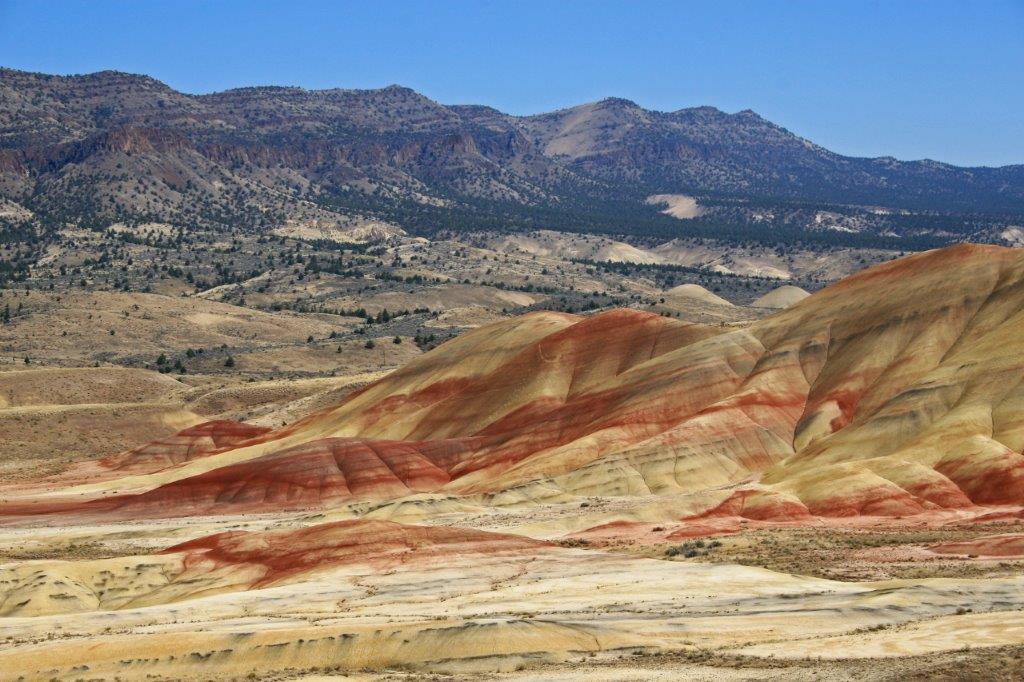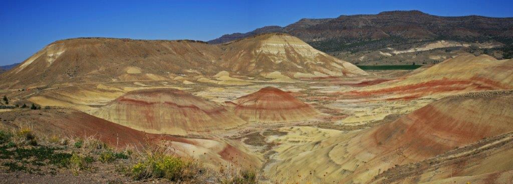 I probably took about 200 photos.  Everywhere you looked there were different colours and patterns.  Truly, truly my kind of place.  I will definitely go there again, and this time I will be sure to have time to stop at the Sheep Rock Unit as well.  Lots of photos to follow – The hills are composed of a clumpy granuale and each colour is a different material.  You will have to look up all the scientific information if you want the details.  Just google Painted Hills.   We eventually left the wondrous painted hills and made our way to the community of John Day where we spent the night. Those two days were a photographers dream.  I had so much fun!