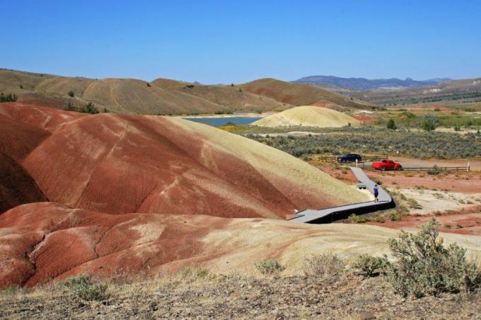 In the morning we continued north to Redmond then turned east on Highway 126.  One and a half hours later we turned off at the entrance to John Day Fossil Beds National Monument (Painted Hills Unit).  A little further up the road is the Sheep Rock Unit, but we spent so much time in the Painted Hills that day that we had no time to see what there was at Sheep Rock.  We will save it for another trip.