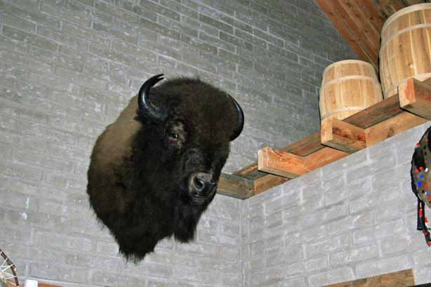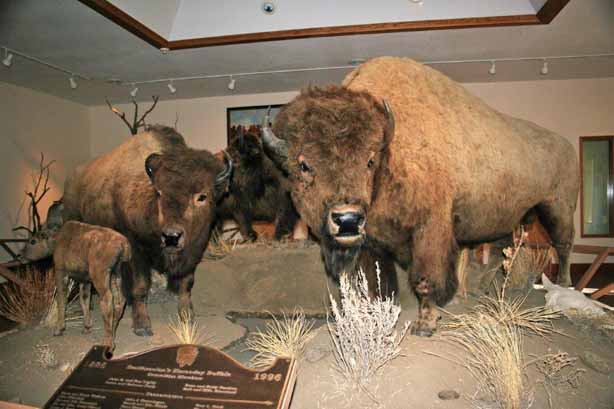 In the museum is a taxidermy group of six buffalo. These animals were collected by a man named Hornaday in 1886 on behalf of the National Museum in Washington, DC, when the species was on the brink of extinction, in order to preserve an example of these great creatures. The animals were on display in the Smithsonian for 70 years and the big bull’s image was the model for several national symbols and issues. Coins, paper currency, postage stamps, the Great Seal for the Department of the Interior, and the National Park Service badge all bear his likeness. The group was returned to Ft. Benton in 1955 but was put in storage until the it was completely restored in 1996 in the original positions and put on display.