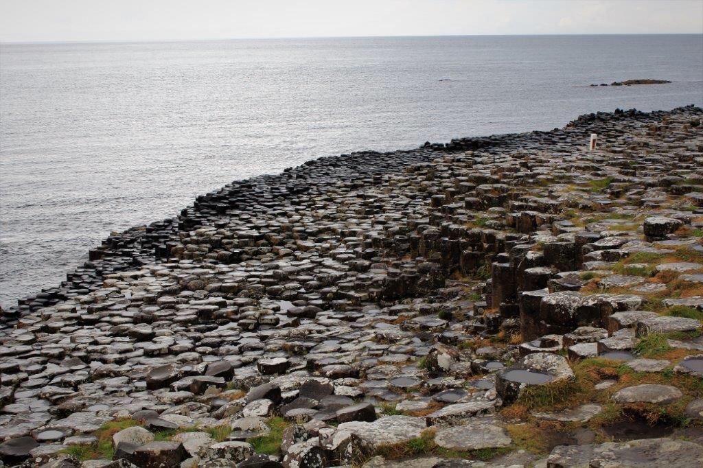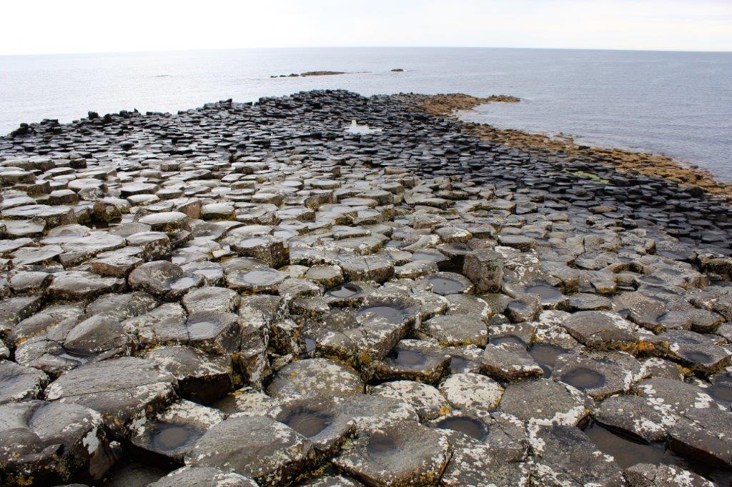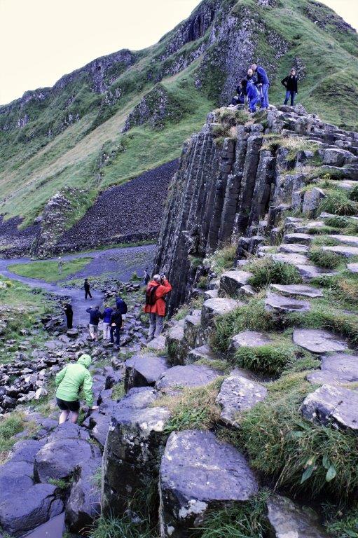 I couldn’t remember the details of the legend we had been told on our first visit so I looked it up on the internet. You just have to love Google! “According to legend, the columns are the remains of a causeway built by a giant. The story goes that the Irish giant Fionn mac Cumhaill (Finn MacCool), from the Fenian Cycle of Gaelic mythology, was challenged to a fight by the Scottish giant Benandonner. Fionn accepted the challenge and built the causeway across the North Channel so that the two giants could meet. In one version of the story, Fionn defeats Benandonner. In another, Fionn hides from Benandonner when he realizes that his foe is much bigger than he is. Fionn’s wife, Oonagh, disguises Fionn as a baby and tucks him in a cradle. When Benandonner sees the size of the ‘baby’, he reckons that its father, Fionn, must be a giant among giants. He flees back to Scotland in fright, destroying the causeway behind him so that Fionn would be unable to chase him down. Across the sea, there are identical basalt columns (a part of the same ancient lava flow) at Fingal’s Cave on the Scottish isle of Staffa, and it is possible that the story was influenced by this.”
