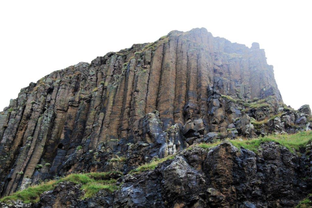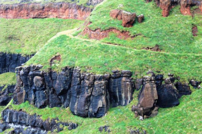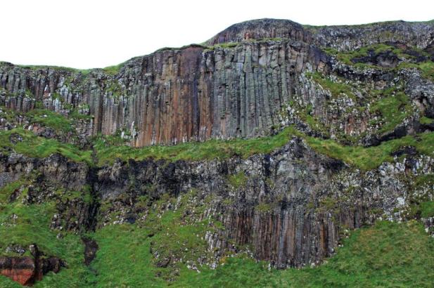 The tops of the columns form stepping stones that lead from the foot of the cliff and disappear into the sea. Most of the columns are hexagonal, although there are also some with four, five, seven or eight sides. The tallest are about 12 meters (39 ft) high, and the solidified lava in the cliffs is 28 meters (92 ft) thick in places.