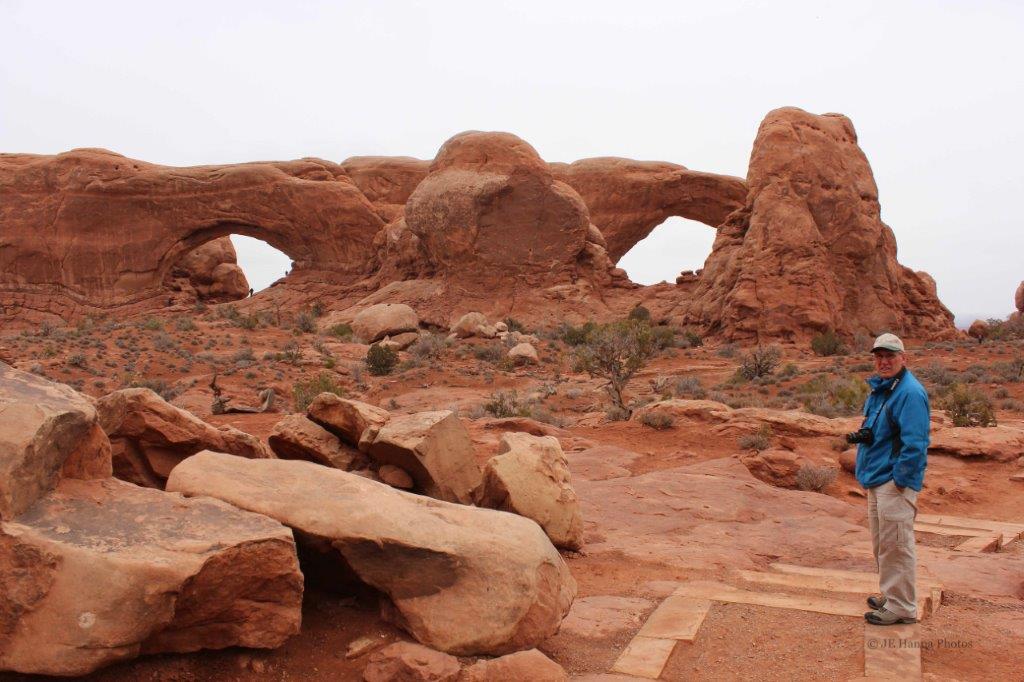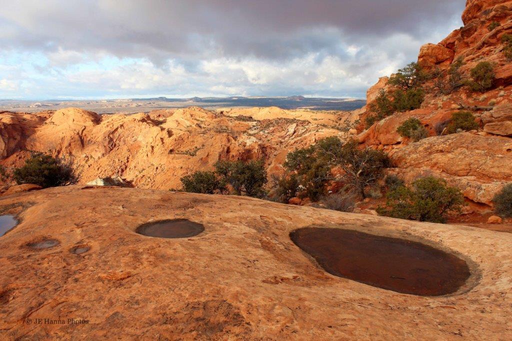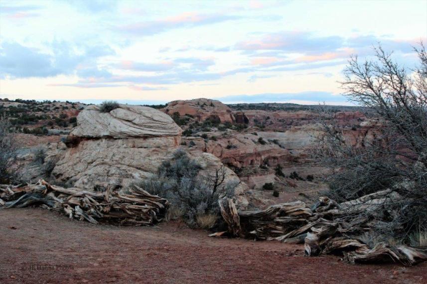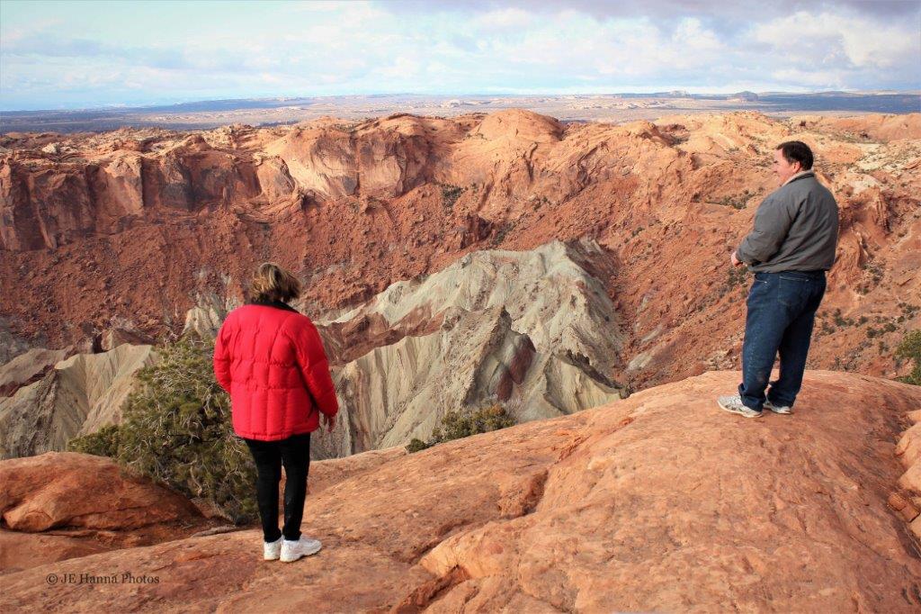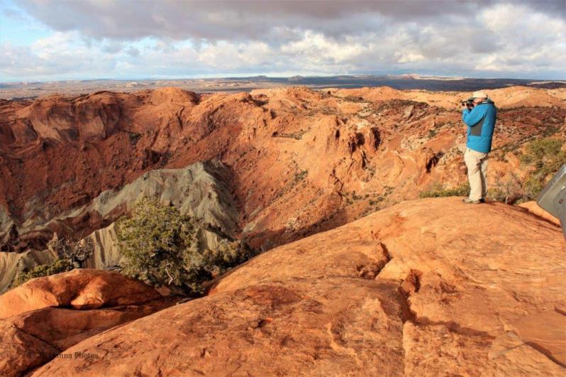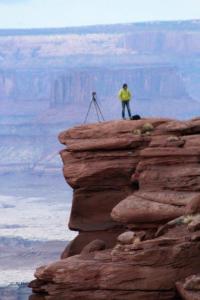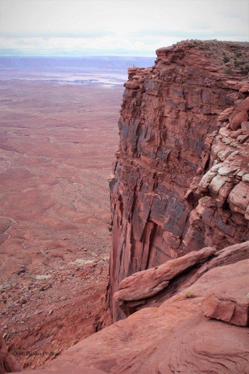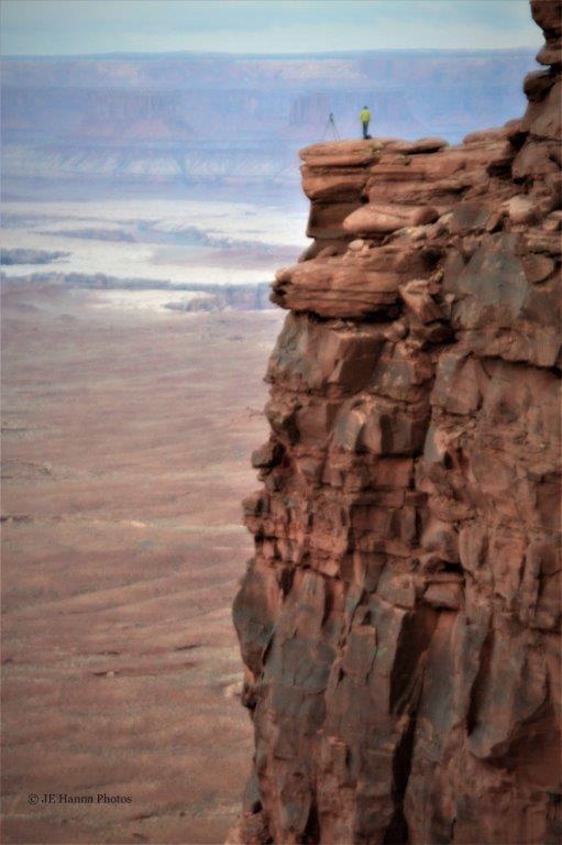 The Green River Overlook area is very popular with sunset photographers. Check out the photos below. Look closely at the photo on the left and you can just make out a tiny figure standing on the edge of that cut on the bluff.