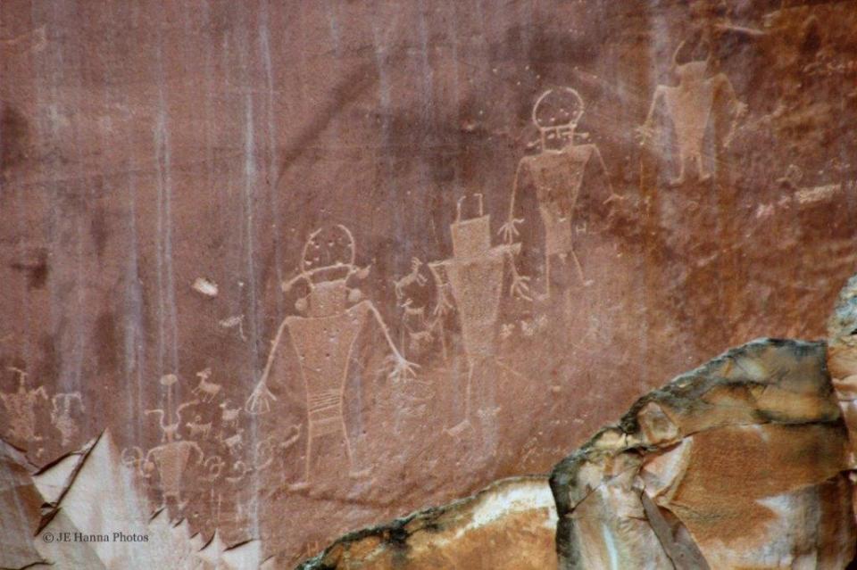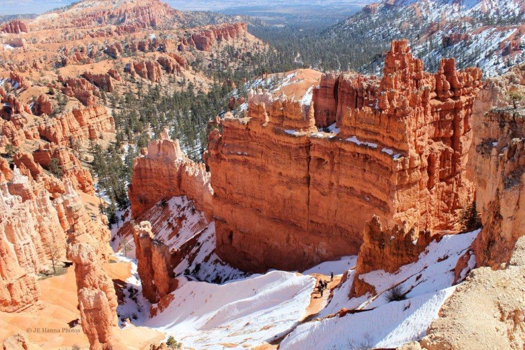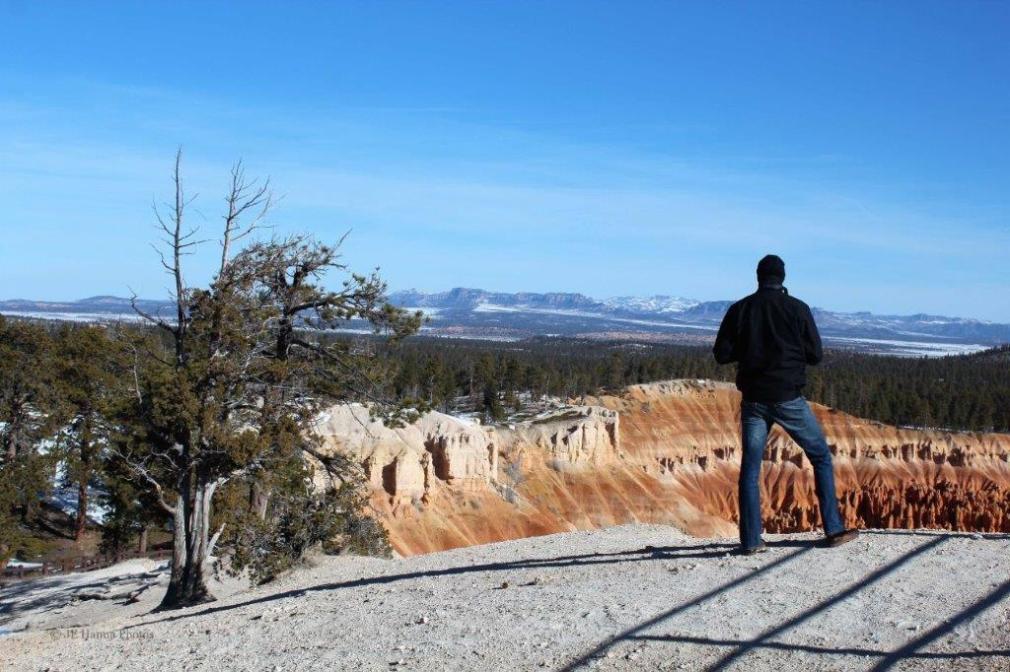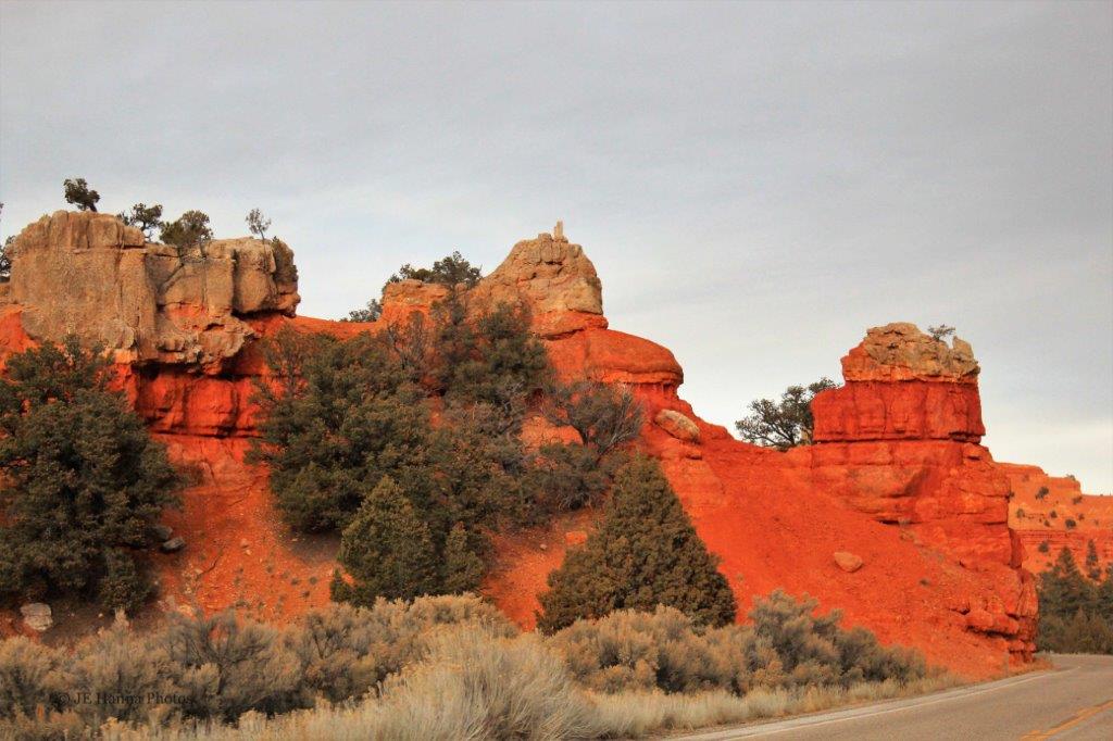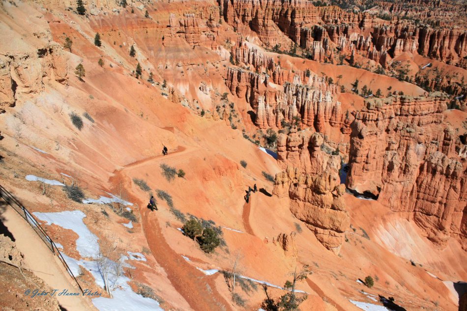 The Green River Overlook area is very popular with sunset photographers. Check out the photos below. Look closely at the photo on the left and you can just make out a tiny figure standing on the edge of that cut on the bluff.