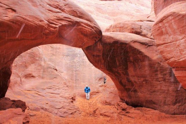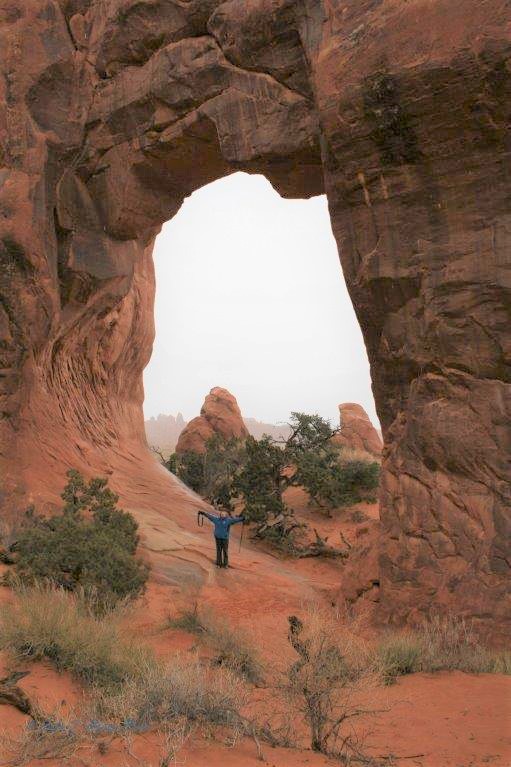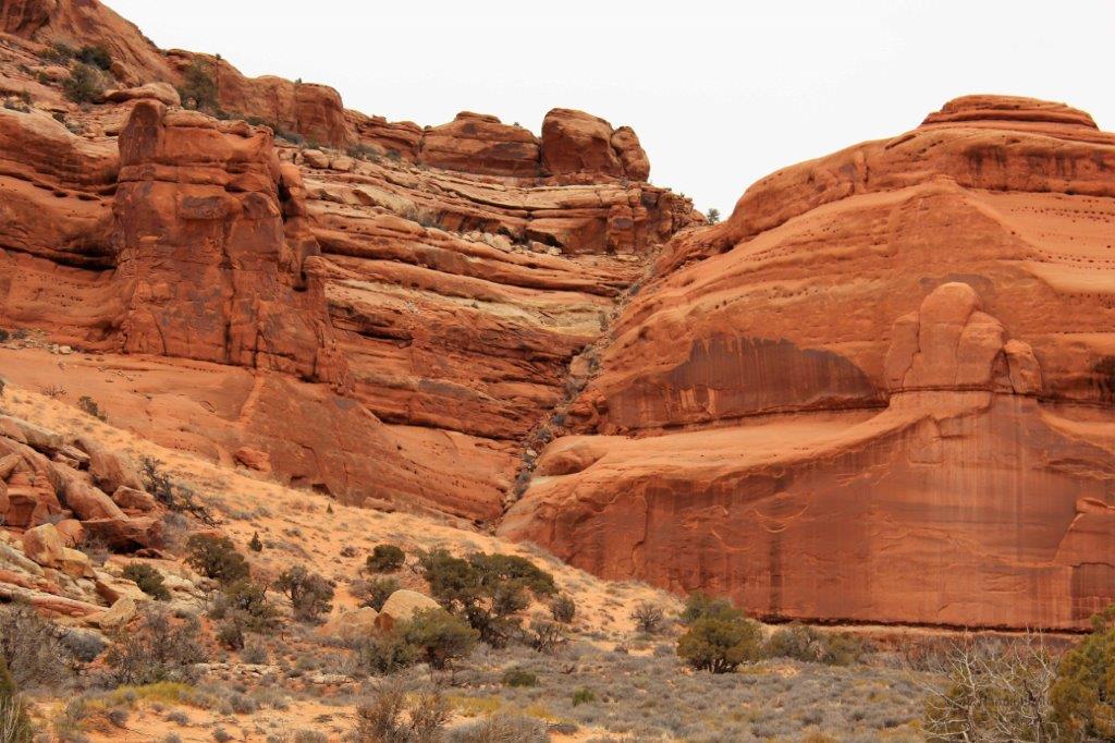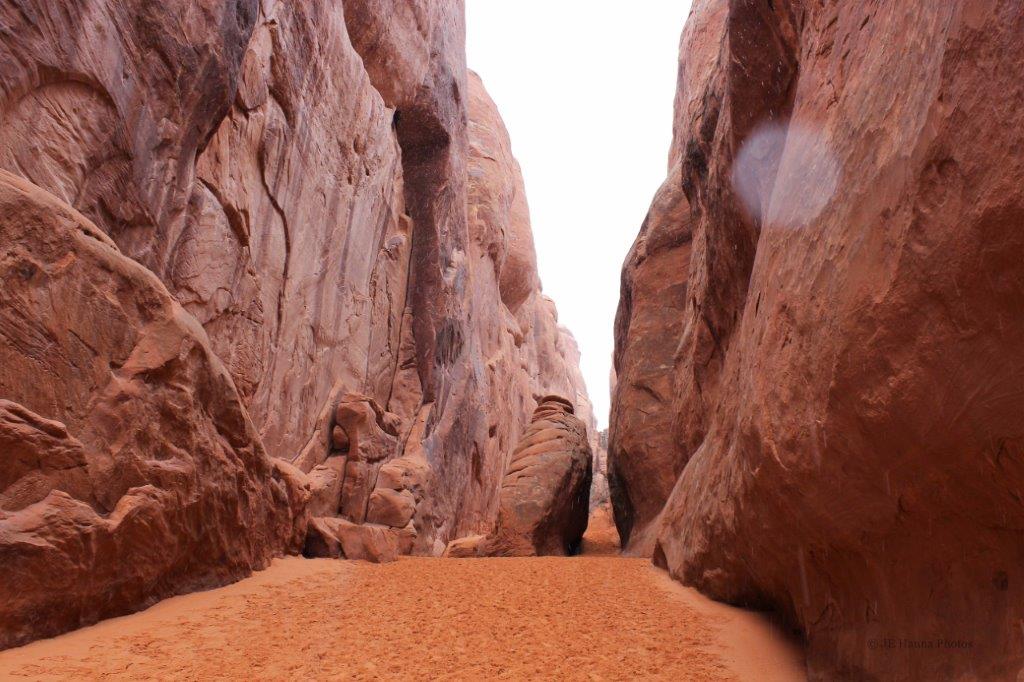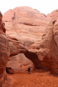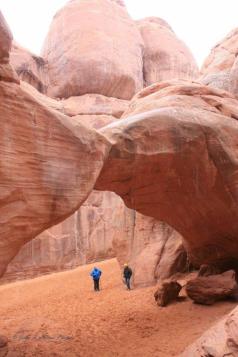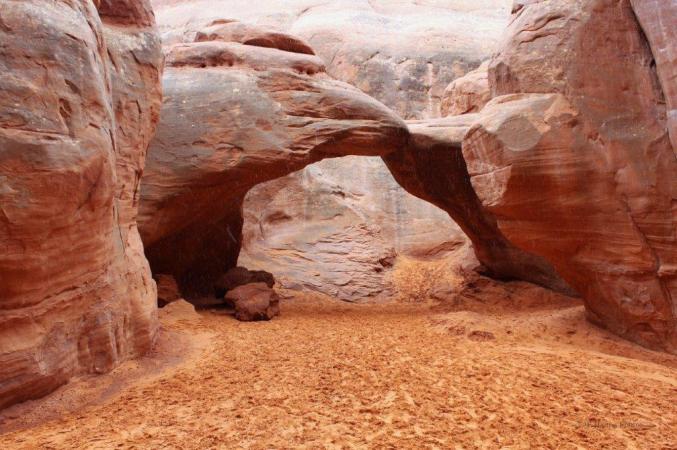 You can see Sand Dune Arch once you walk through a narrow gap into an internal open area. The sand that is worn off the rocks collects here and is very, very fine.