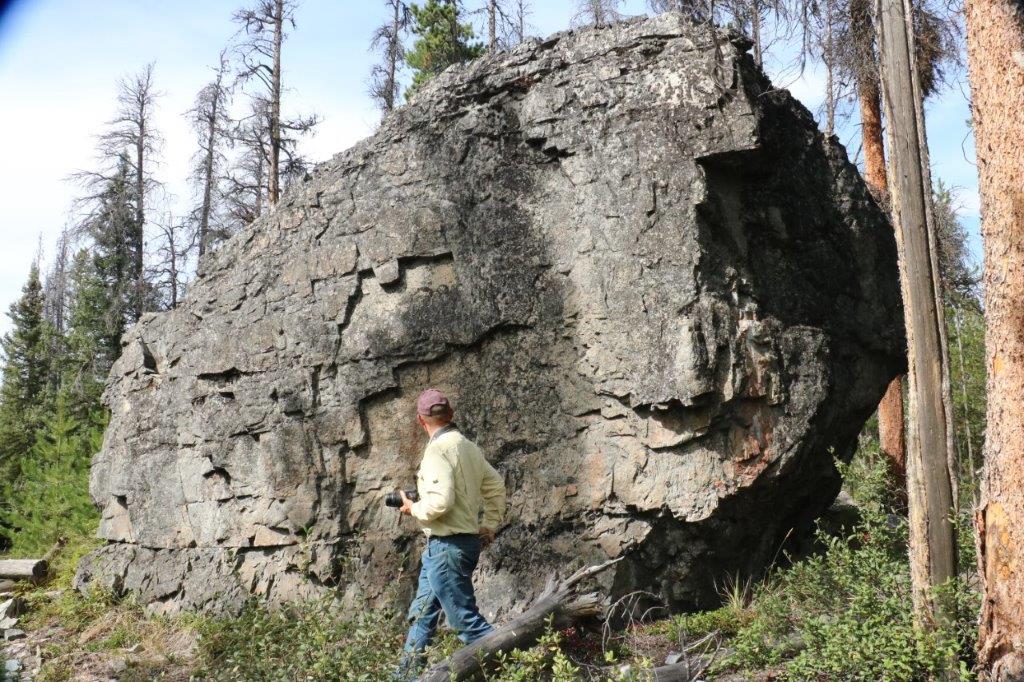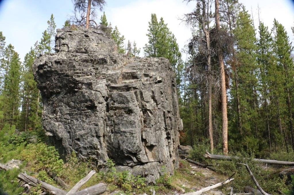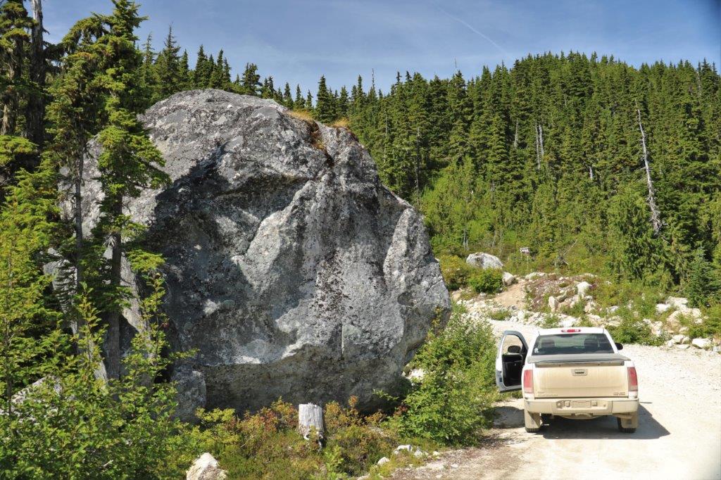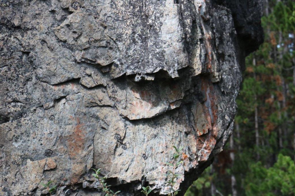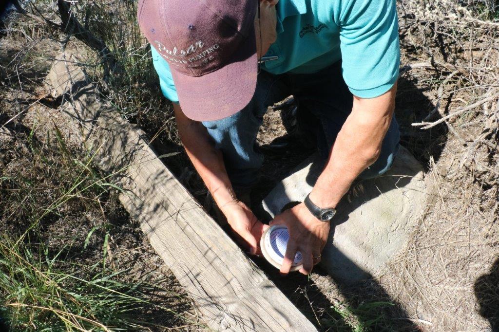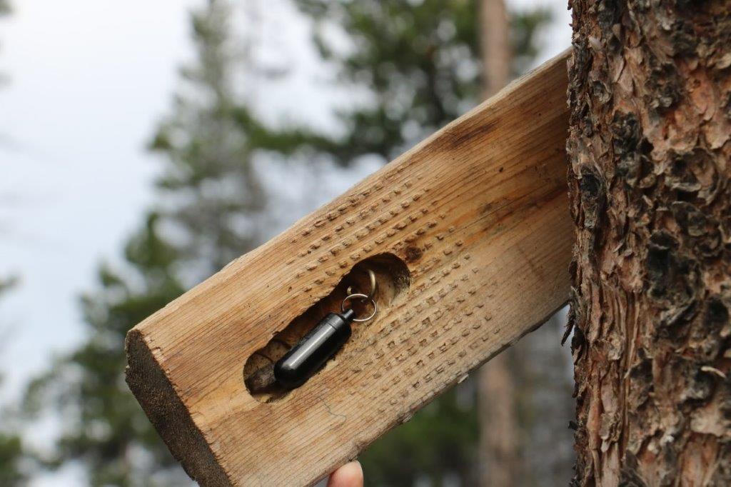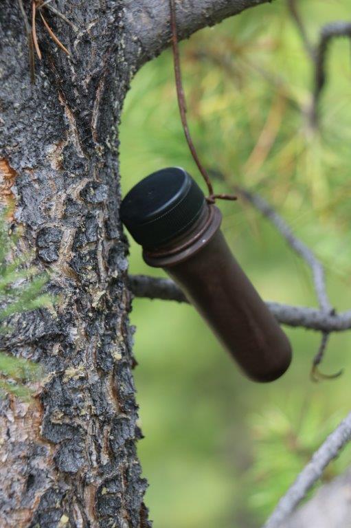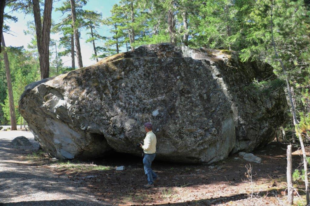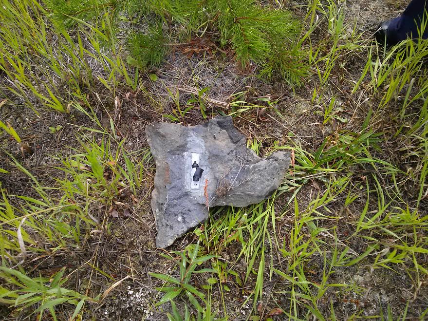 The last cache we found on our journey was at the site of the Parke Ranch just a few km north of Cache Creek. We had to climb up a little hill beside the highway pullout and we were checking along the fence line, dodging this rock when I took a closer look at it. A clever hide indeed.